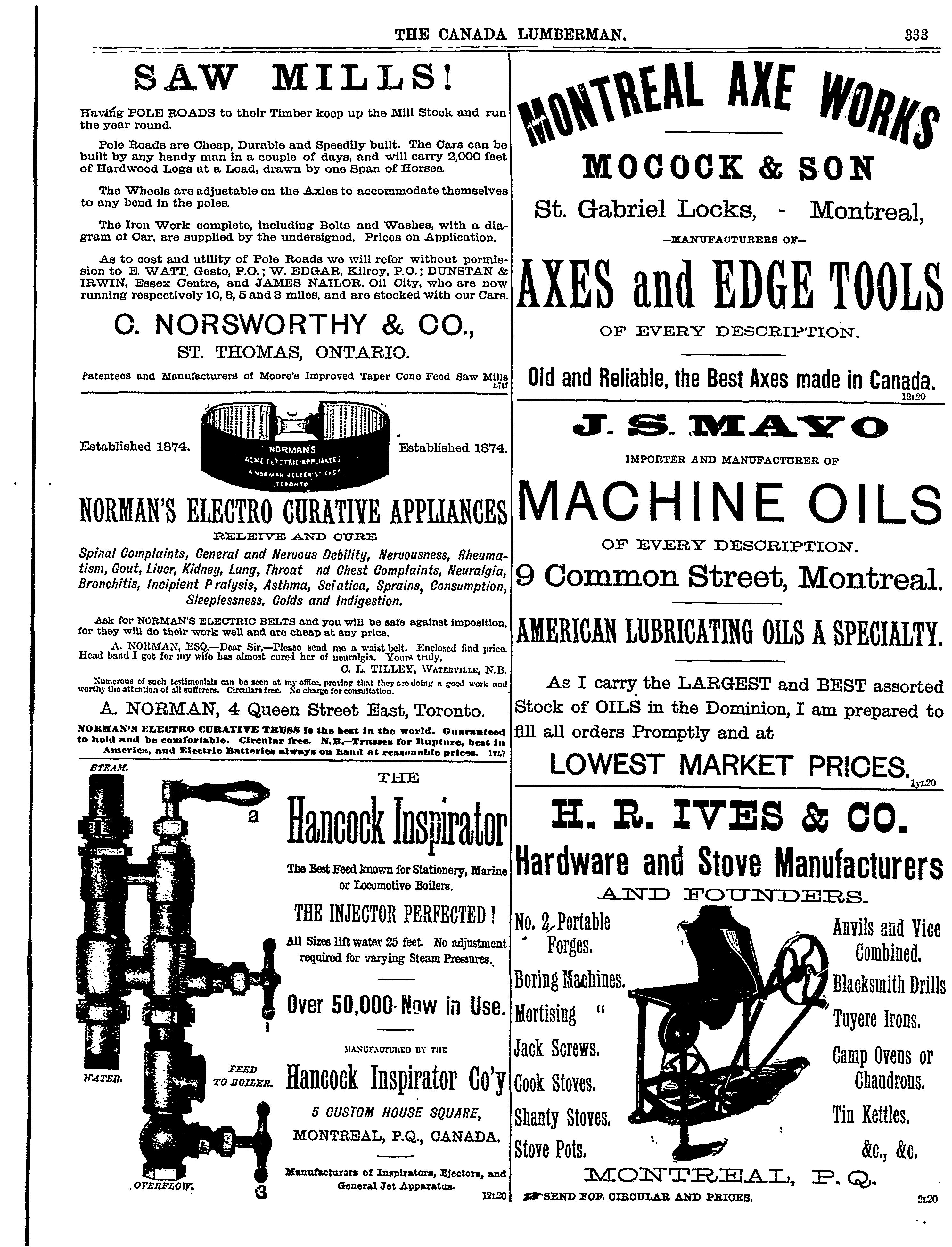 The Canada lumberman and millers', manufacturer's and miners gazette [Vol. 3, no. 21 (Nov. 1, 1883)]