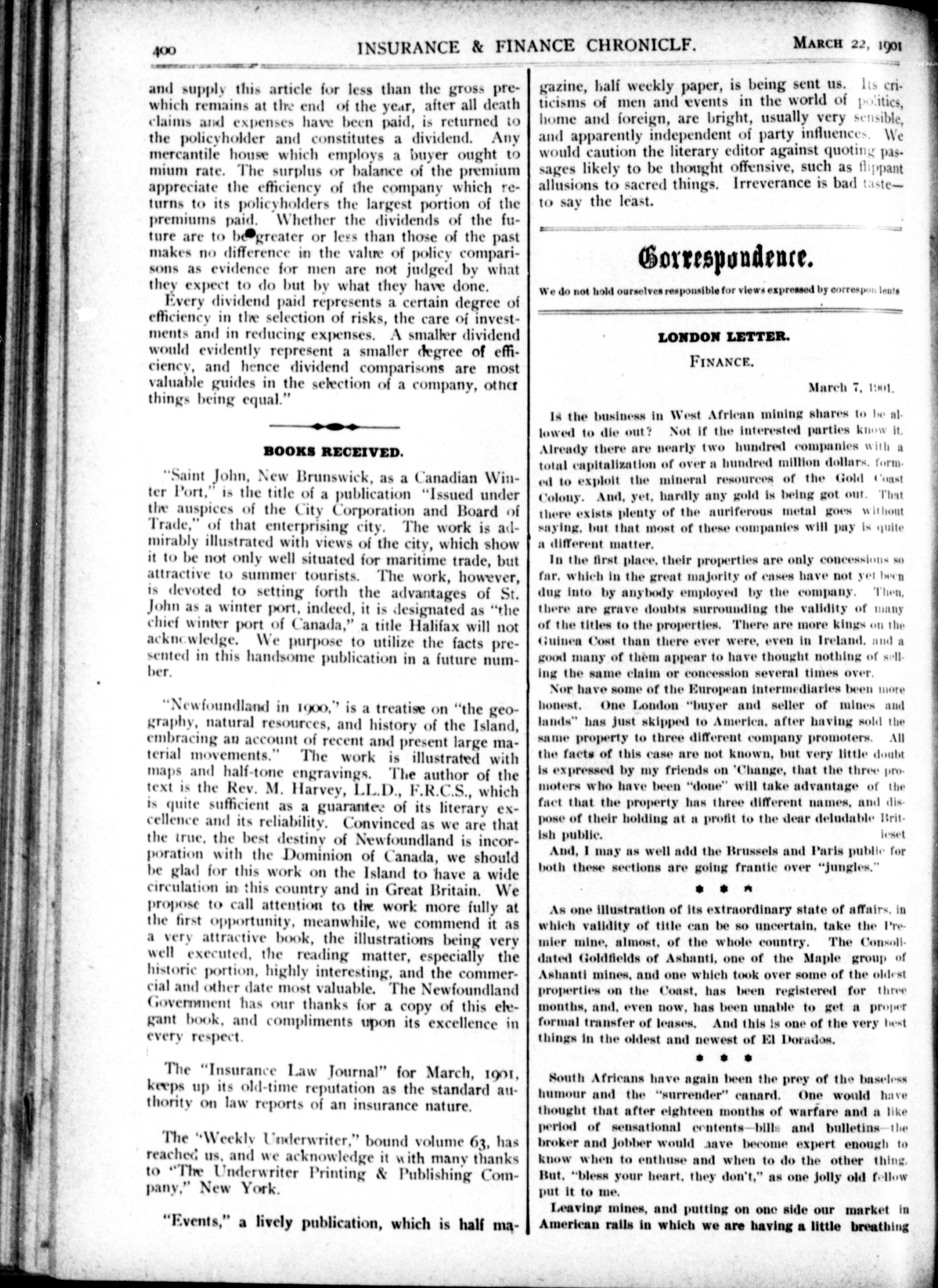 The chronicle : Vol. XXI, No. 12 (March 22, 1901)