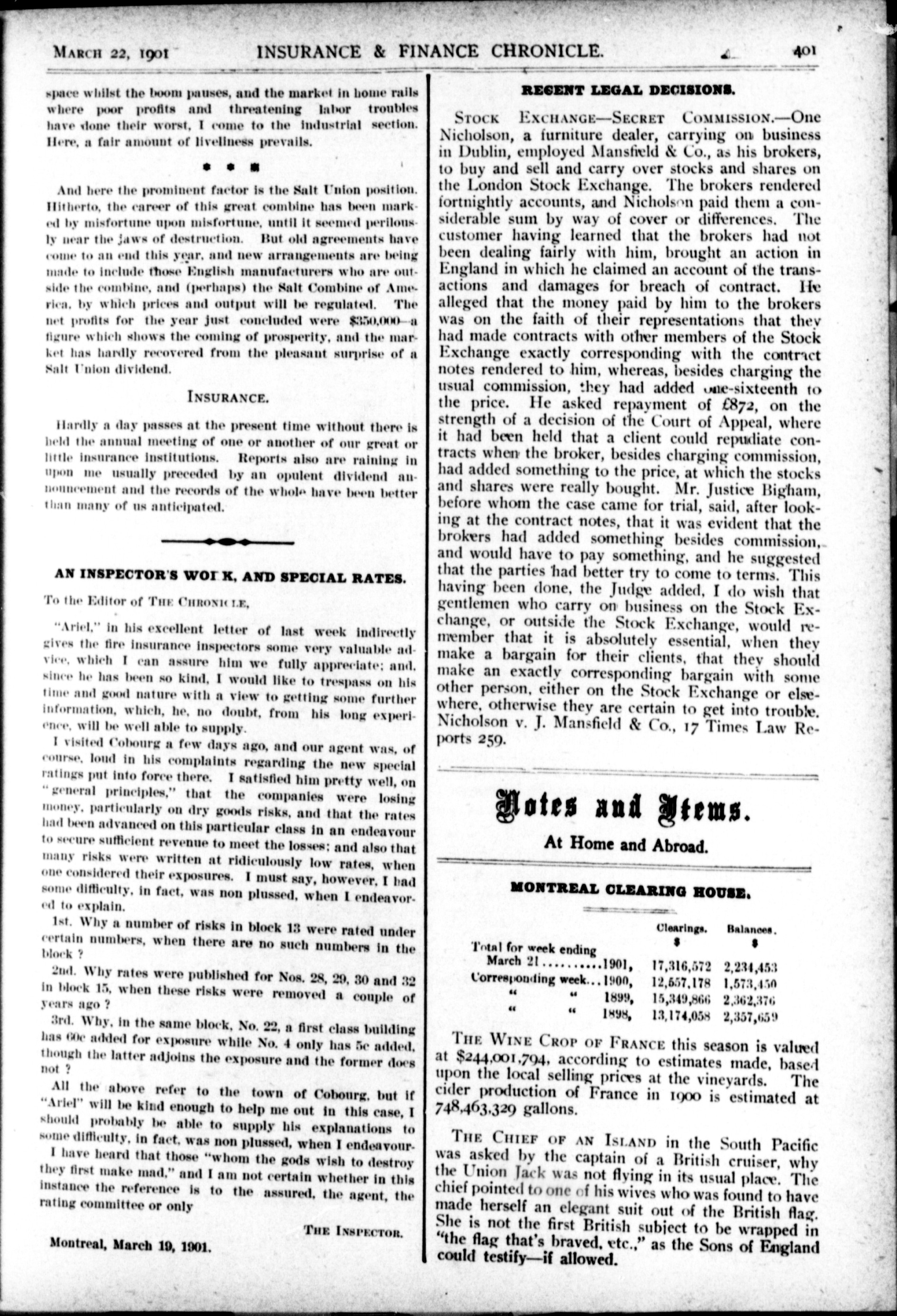 The chronicle : Vol. XXI, No. 12 (March 22, 1901)