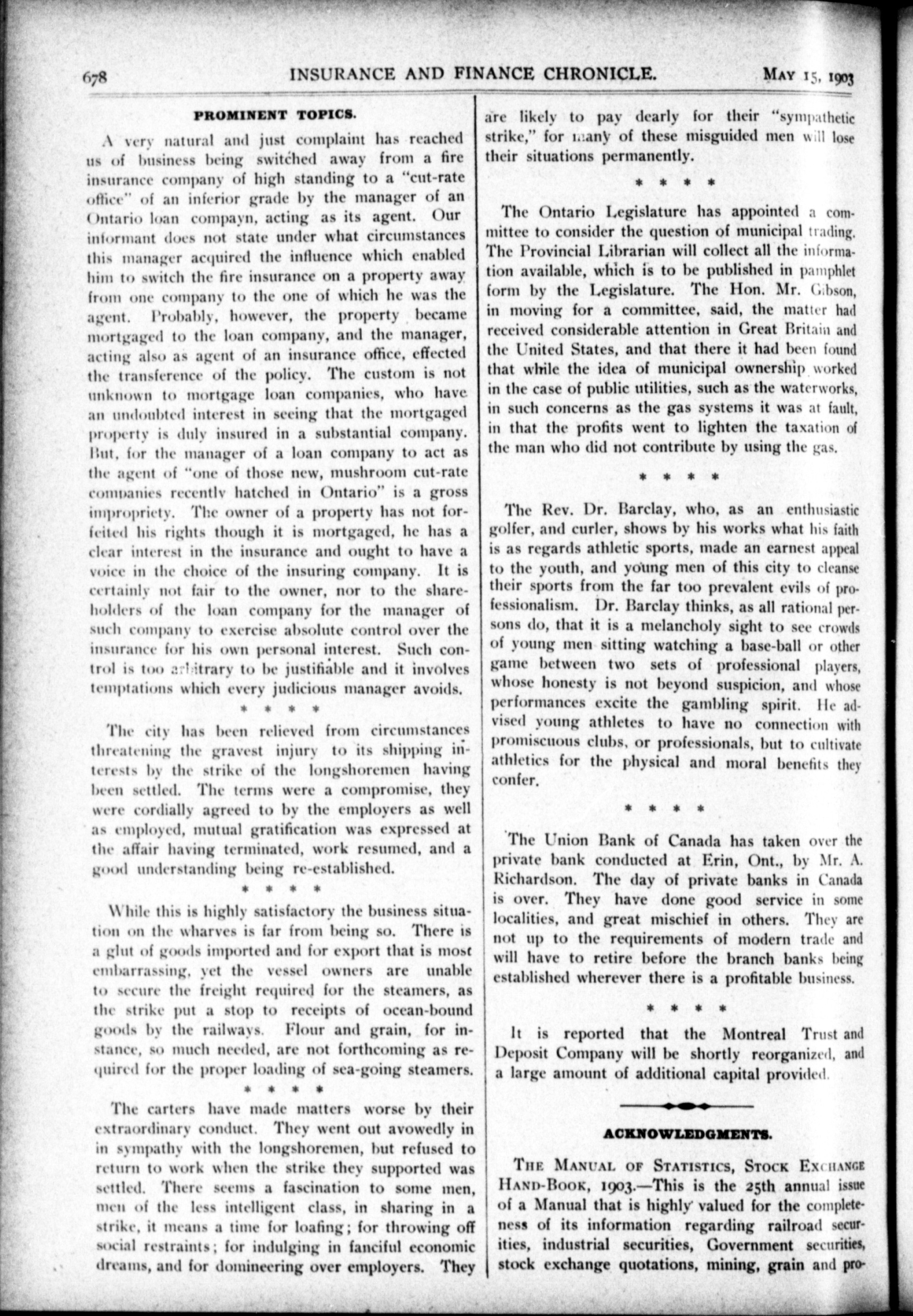 The chronicle : Vol. XXIII, No. 20 (May 15, 1903)