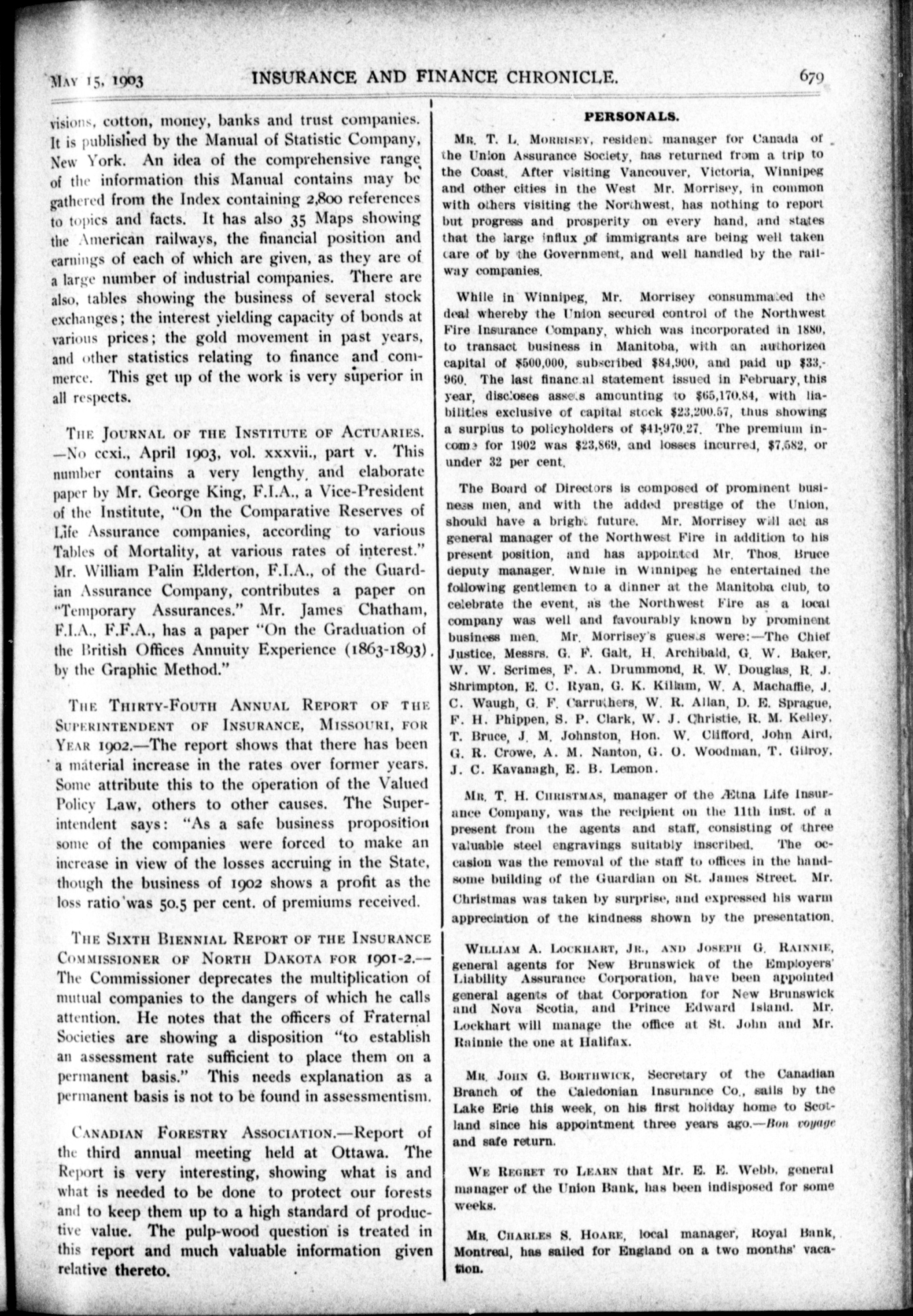 The chronicle : Vol. XXIII, No. 20 (May 15, 1903)