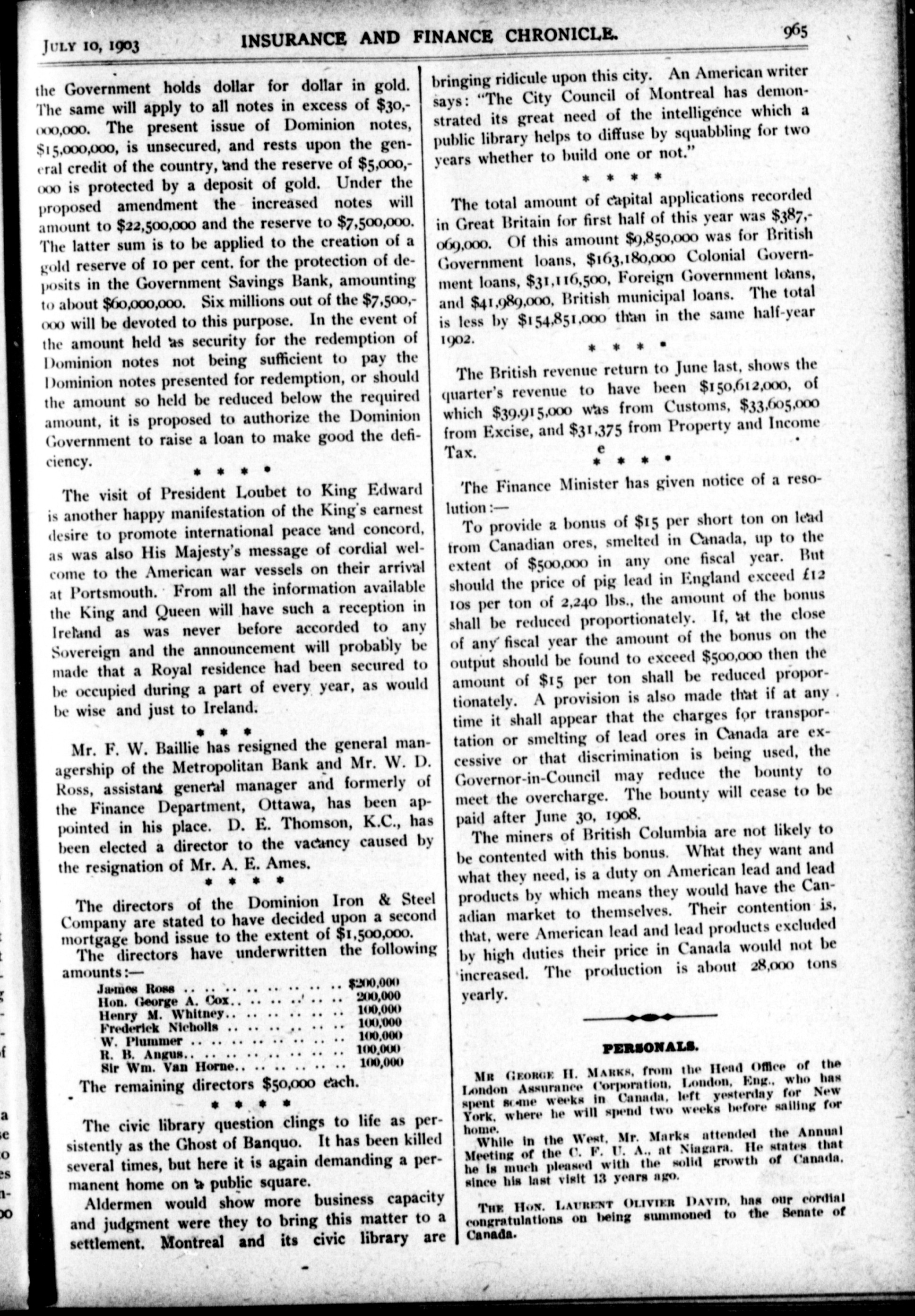 The chronicle : Vol. XXIII, No. 28 (July 10, 1903)