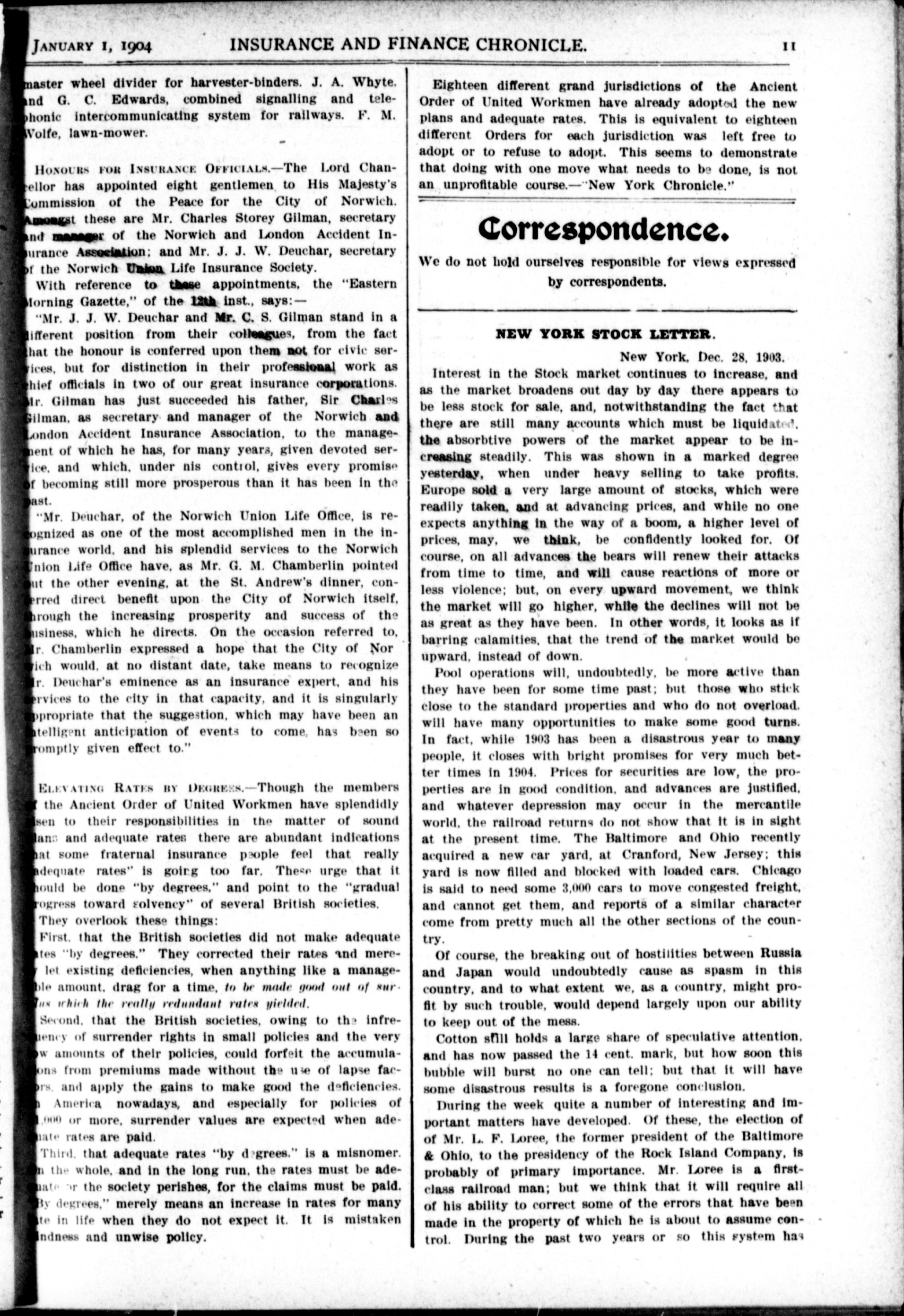The chronicle : Vol. XXIV, No. 1 (January 1, 1904)