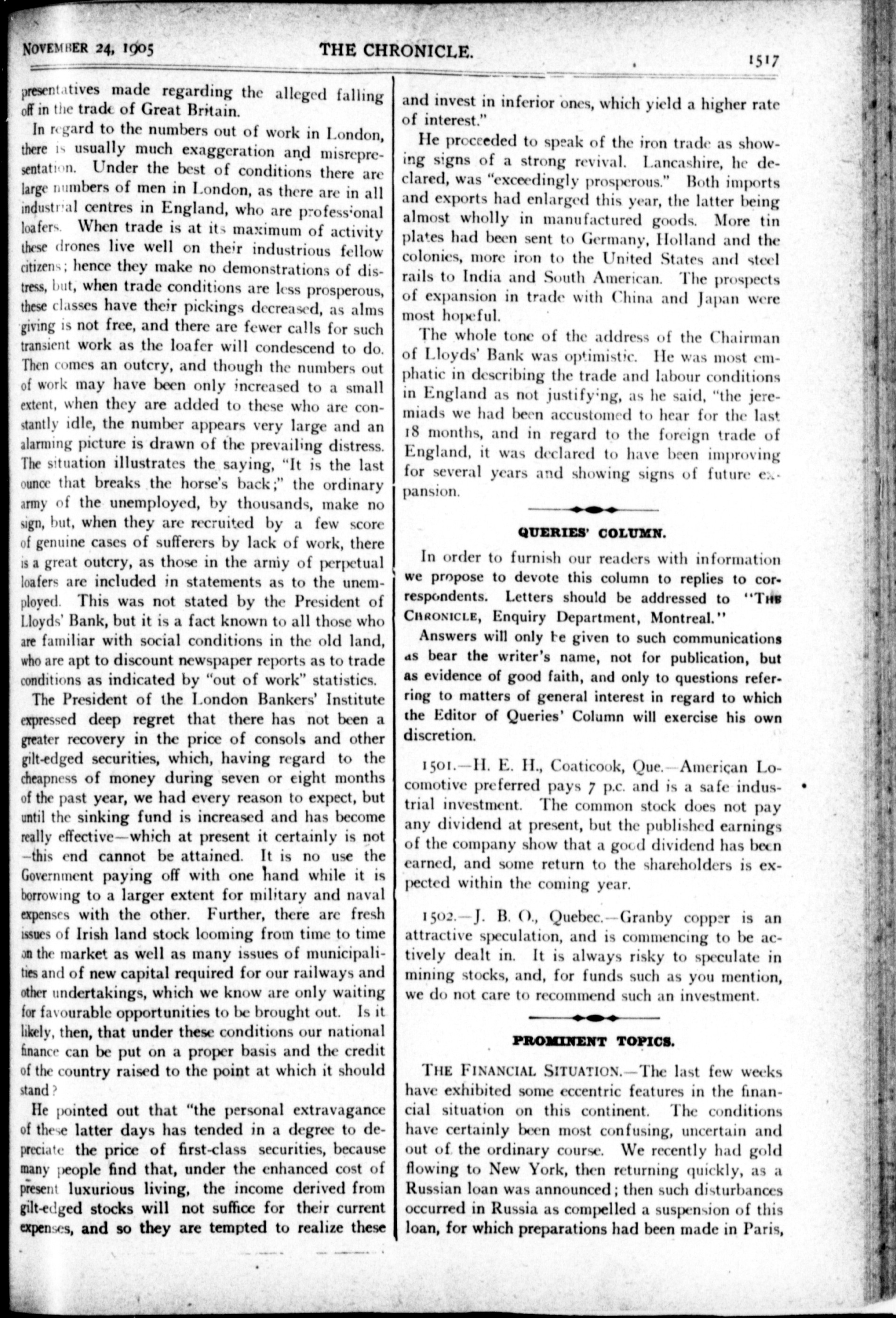 The chronicle : Vol. XXV, No. 47 (November 24, 1905)