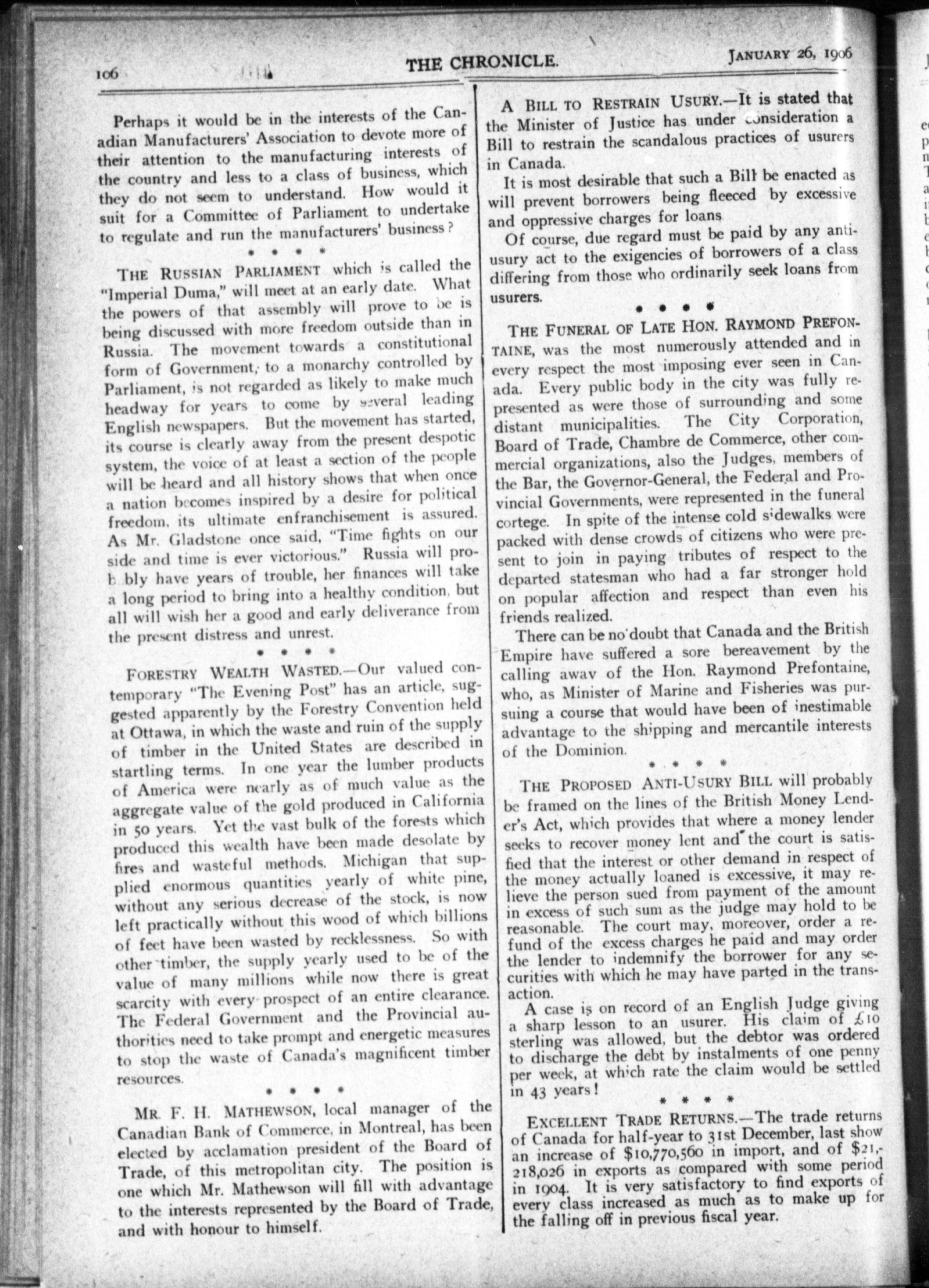 The chronicle : Vol. XXVI, No. 4 (January 26, 1906)