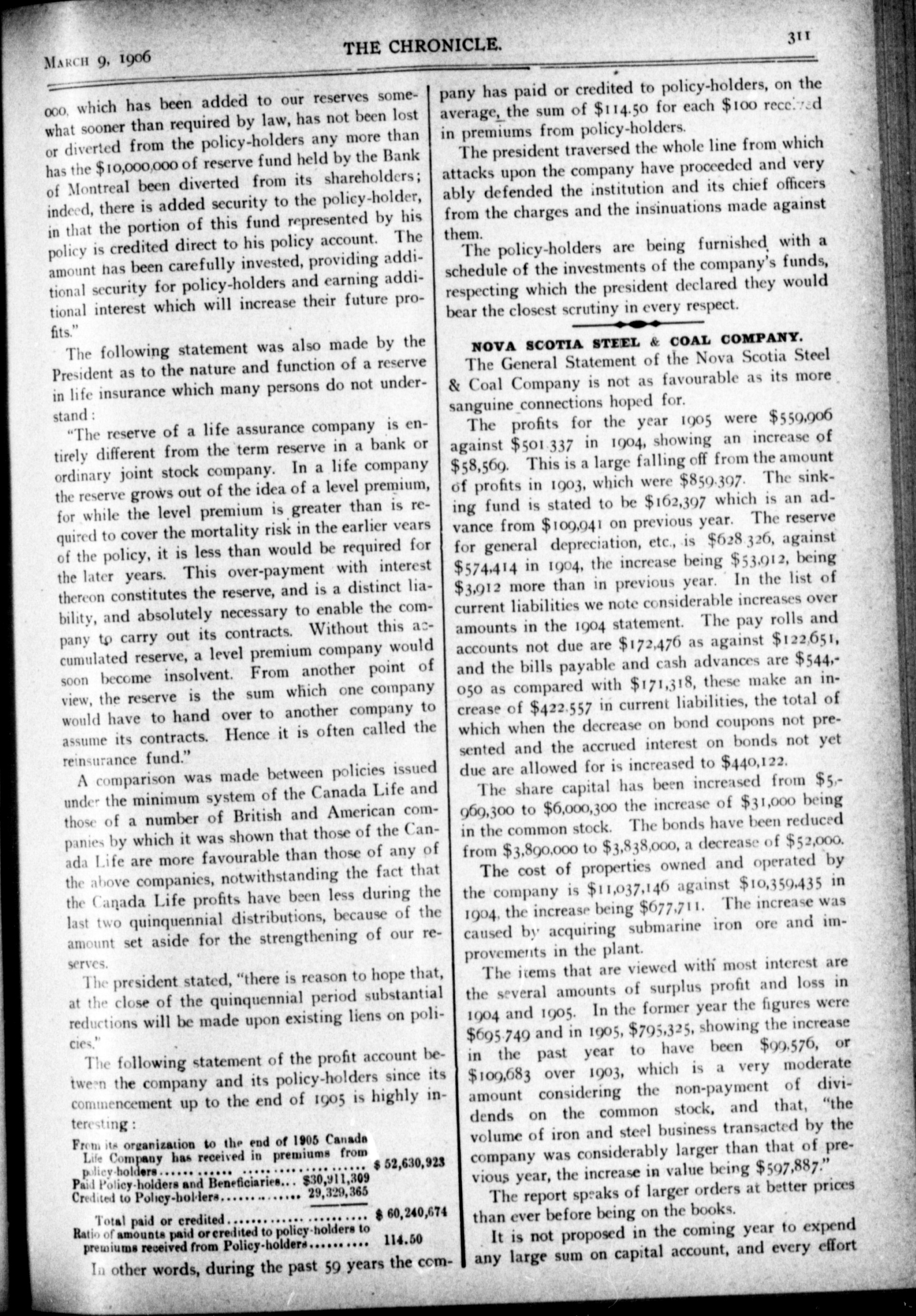 The chronicle : Vol. XXVI, No. 10 (March 9, 1906)
