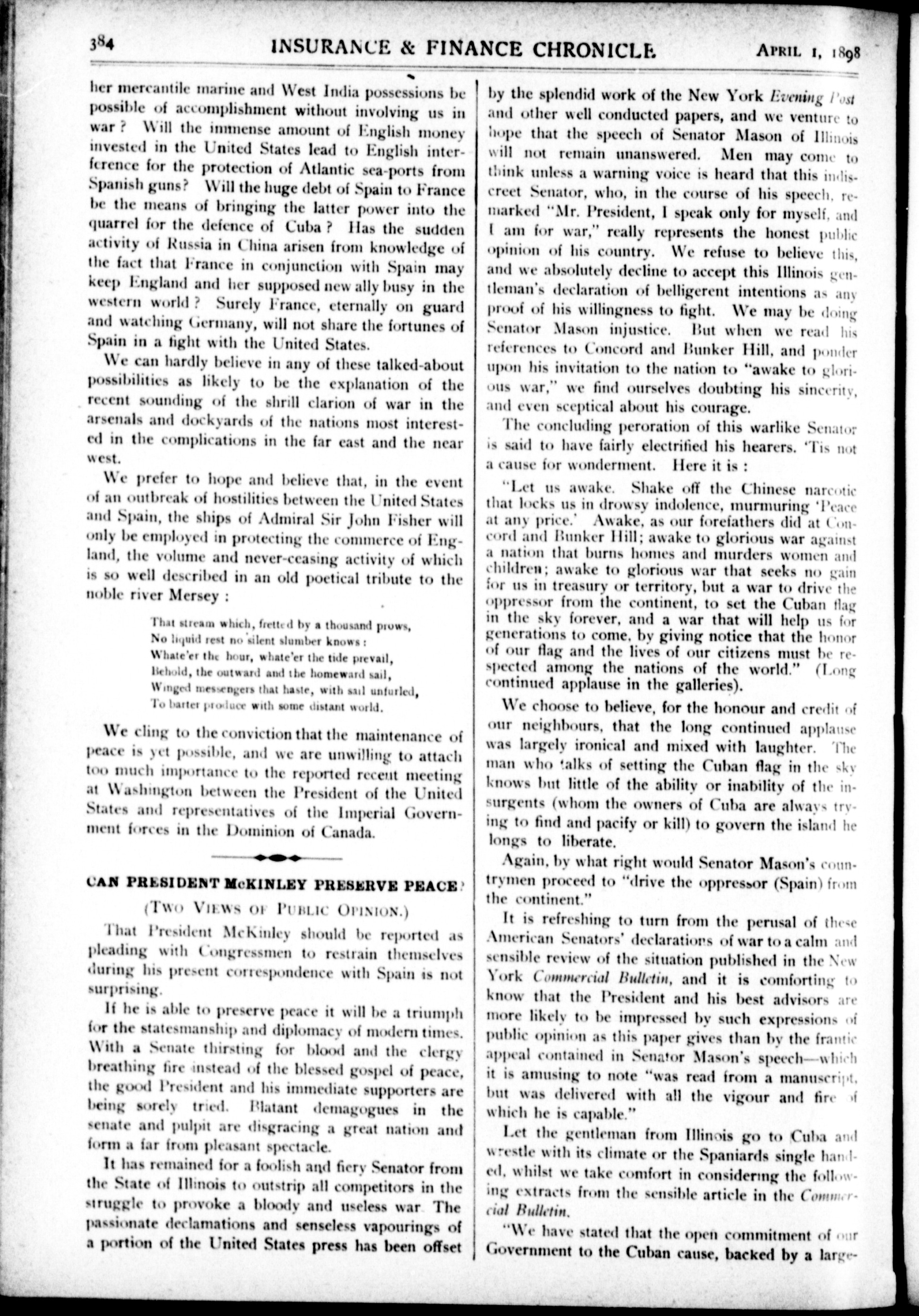 The chronicle : Vol. XVIII, No. 13 (April 1, 1898)