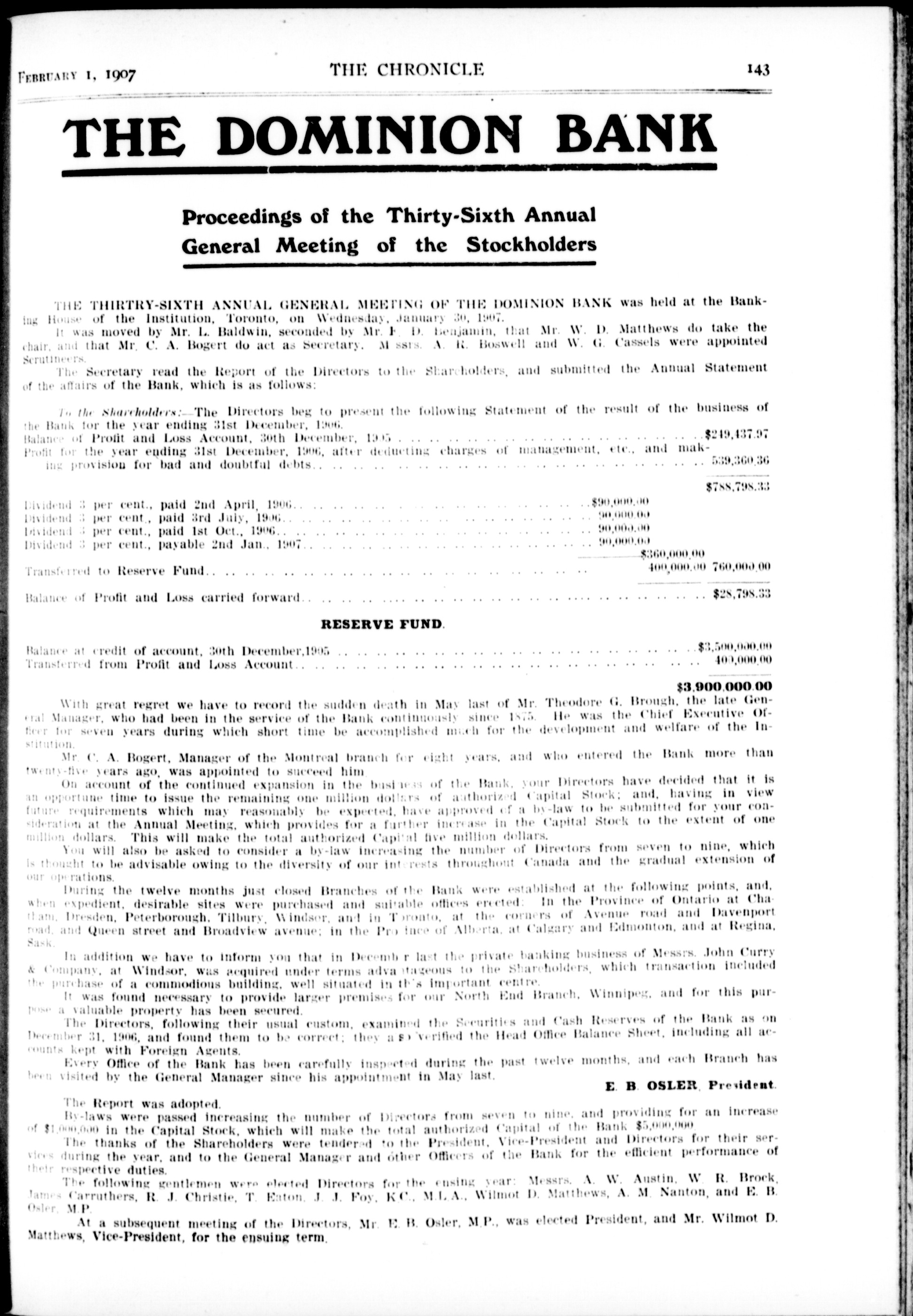 The chronicle : Vol. XXVII, No. 5 (February 1, 1907)