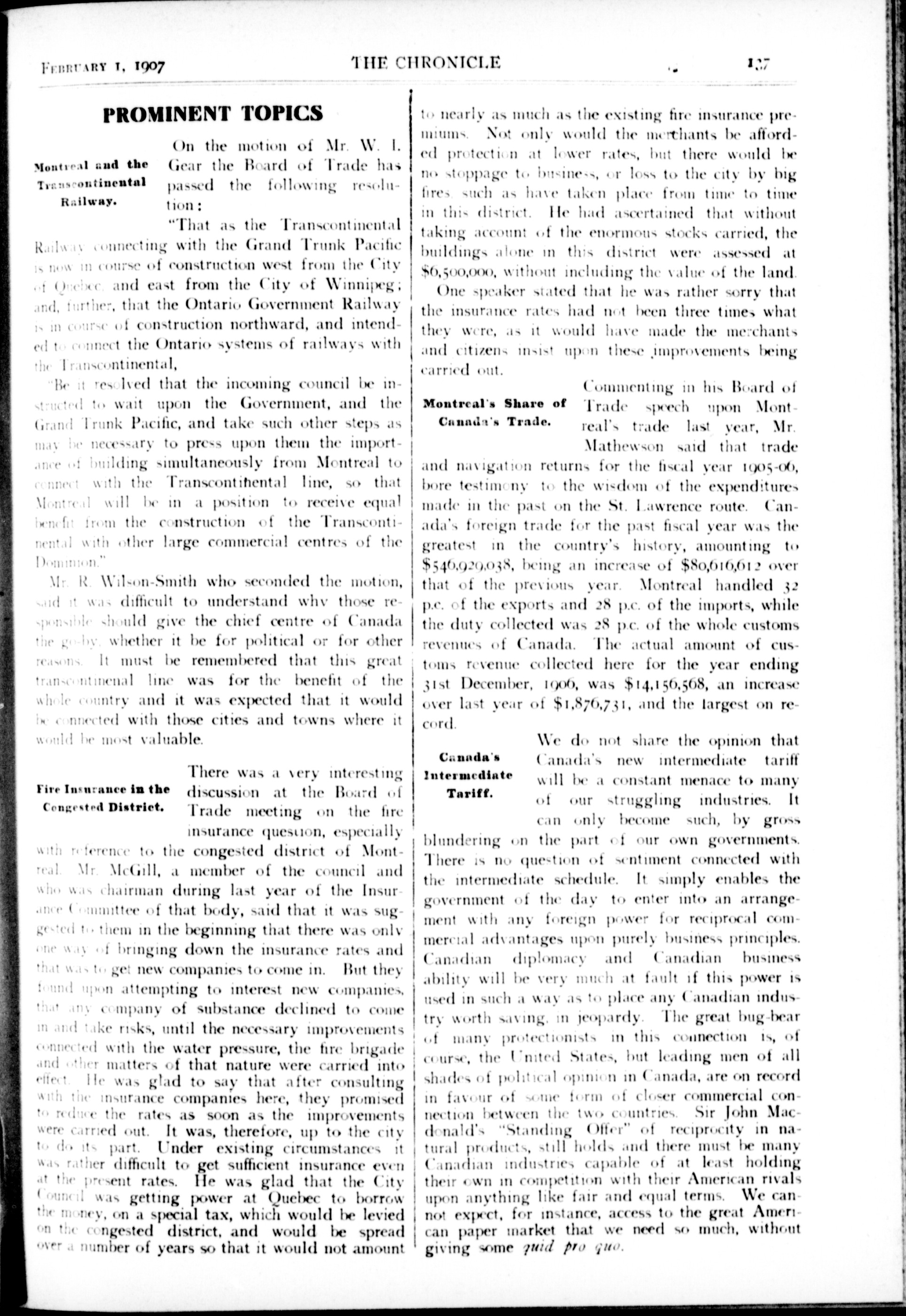 The chronicle : Vol. XXVII, No. 5 (February 1, 1907)