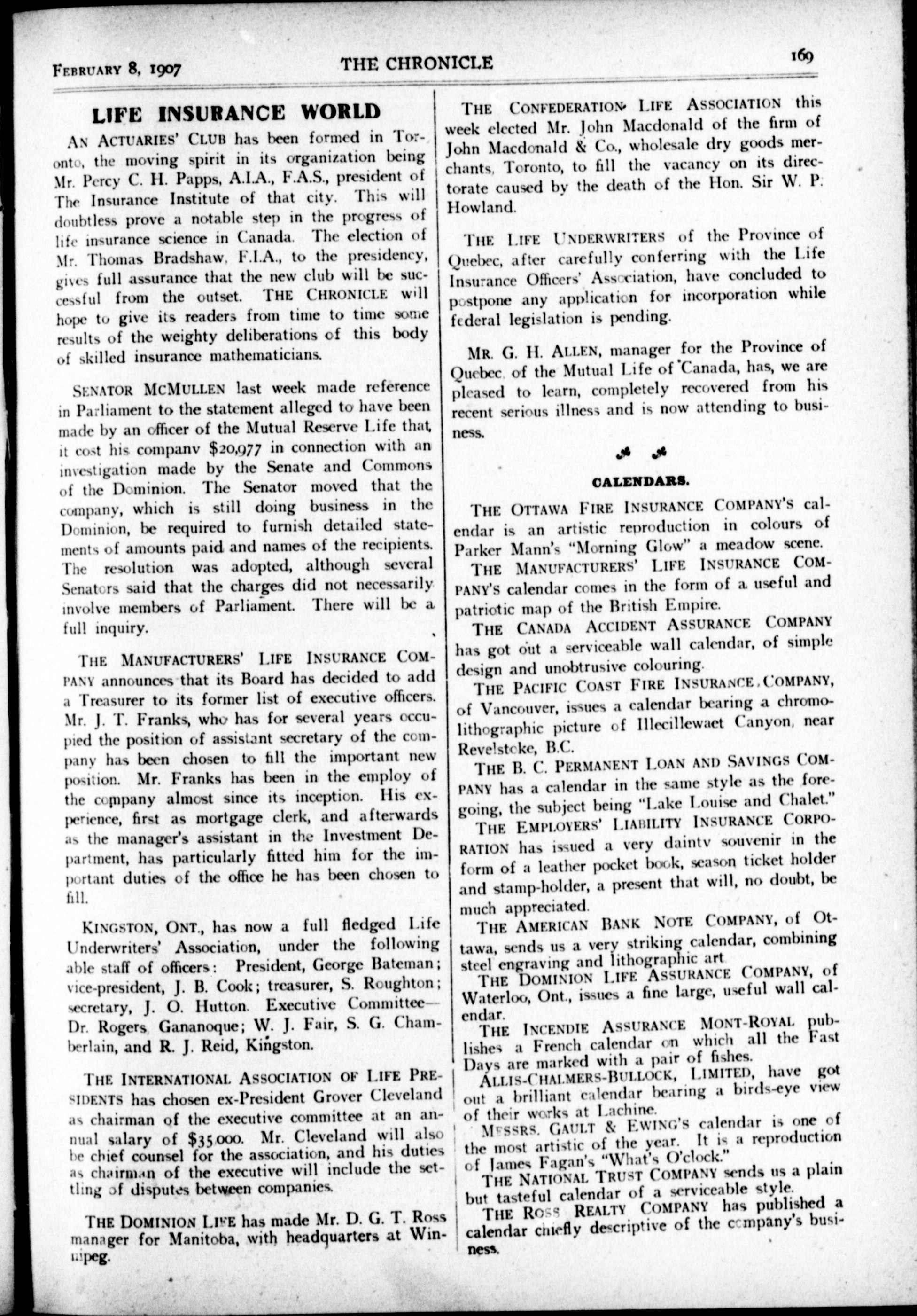 The chronicle : Vol. XXVII, No. 6 (February 8, 1907)