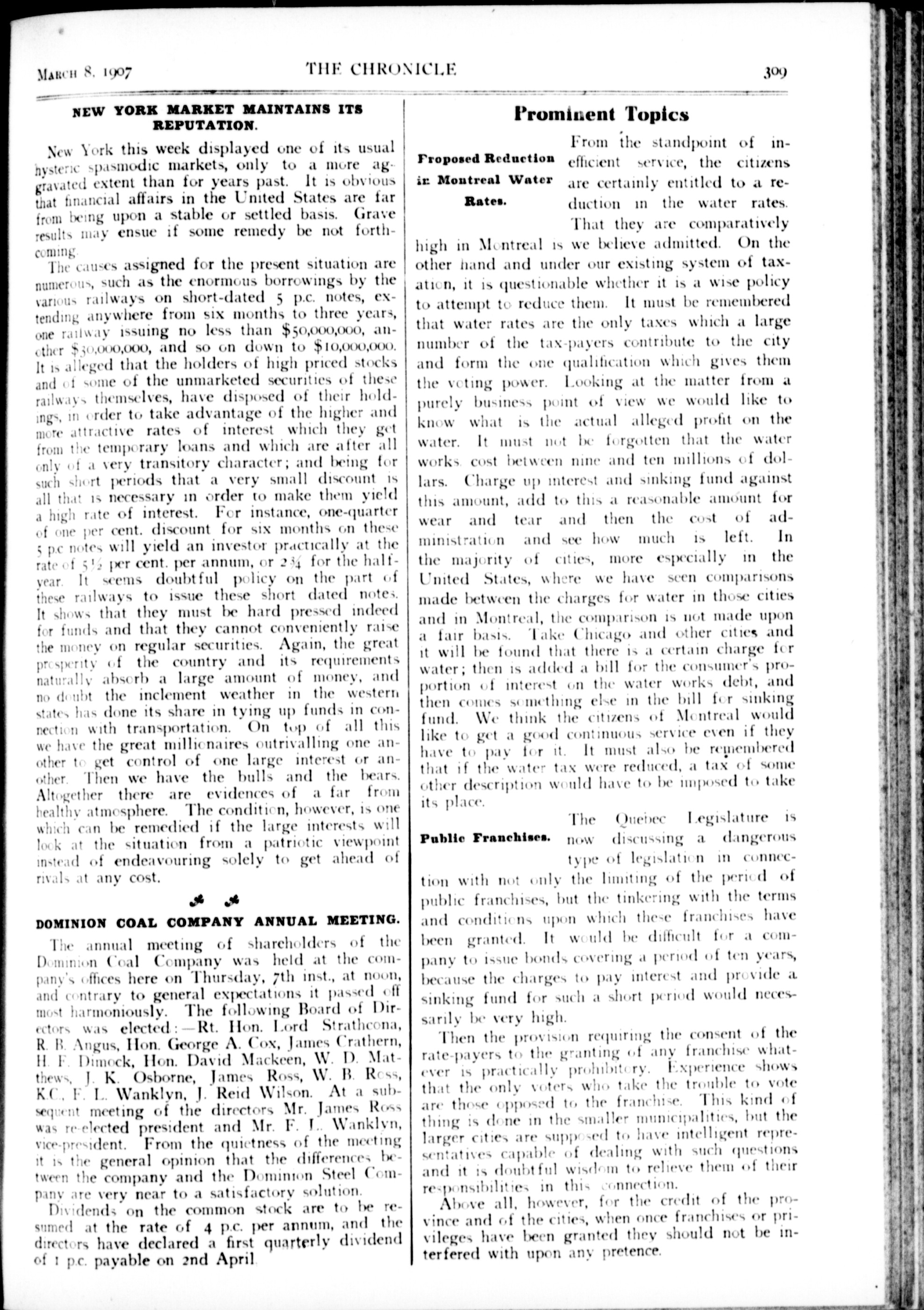 The chronicle : Vol. XXVII, No. 10 (March 8, 1907)