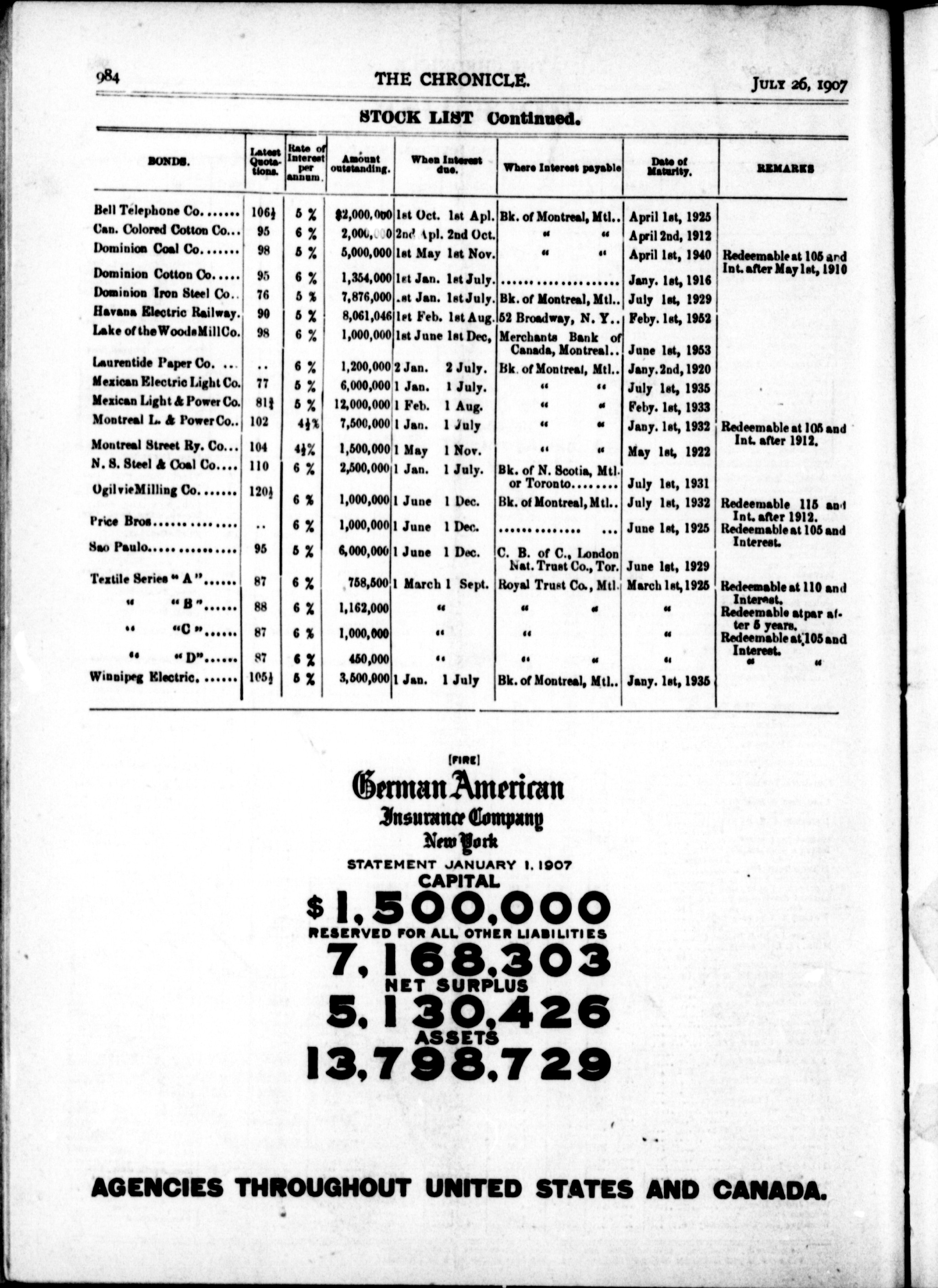 The chronicle : Vol. XXVII, No. 30 (July 26, 1907)