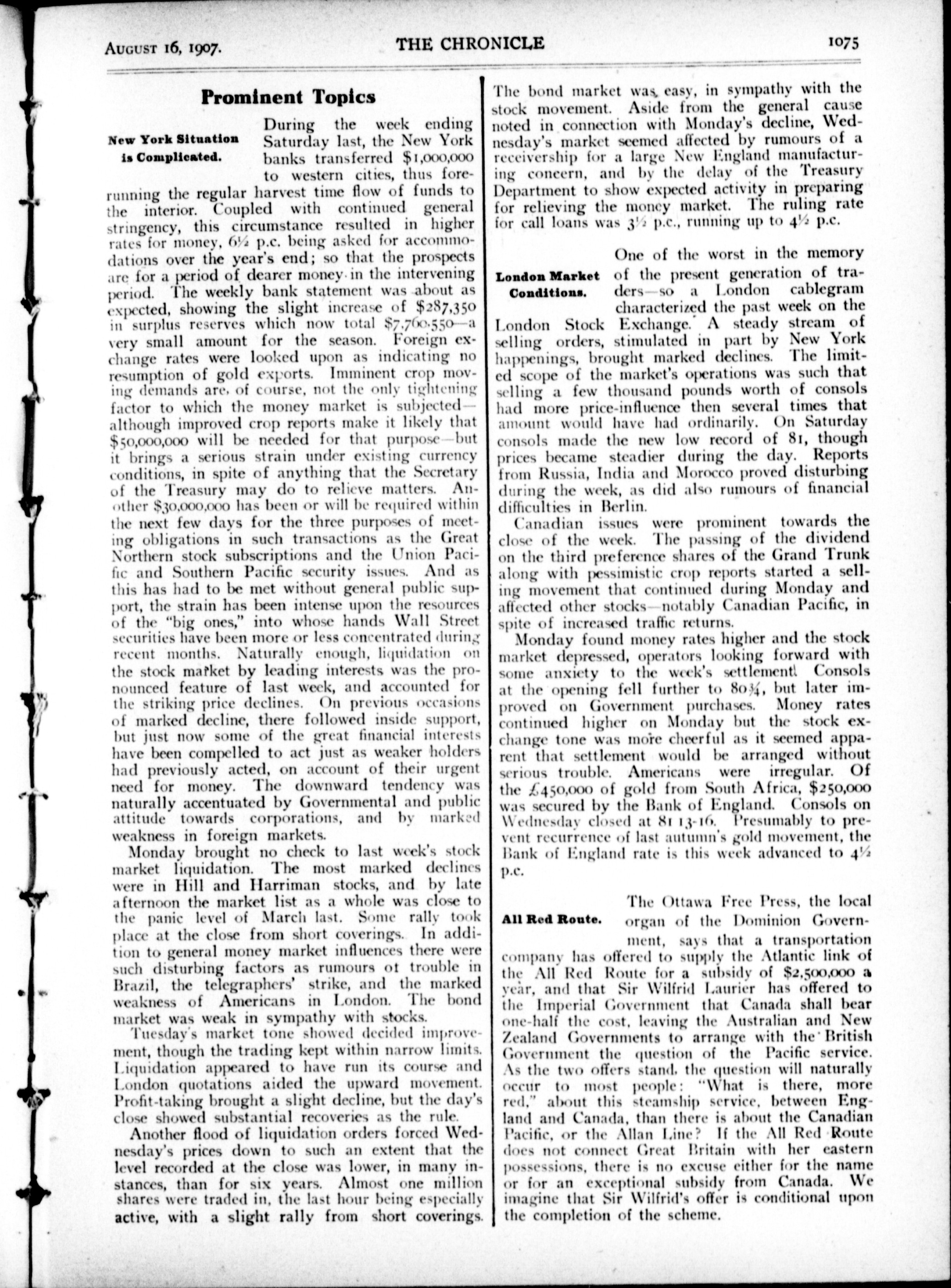 The chronicle : Vol. XXVII, No. 33 (August 16, 1907)
