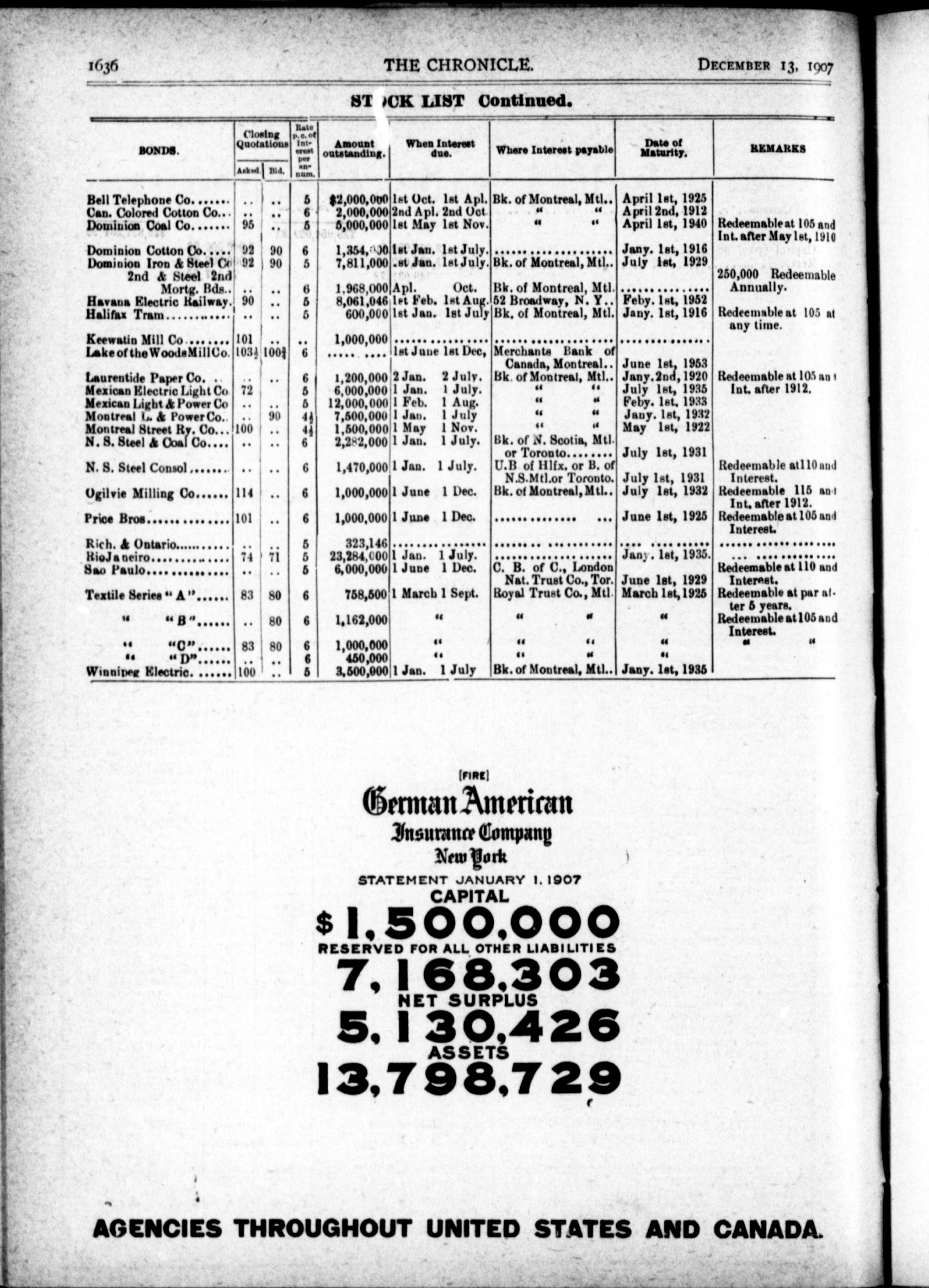 The chronicle : Vol. XXVII, No. 50 (December 13, 1907)