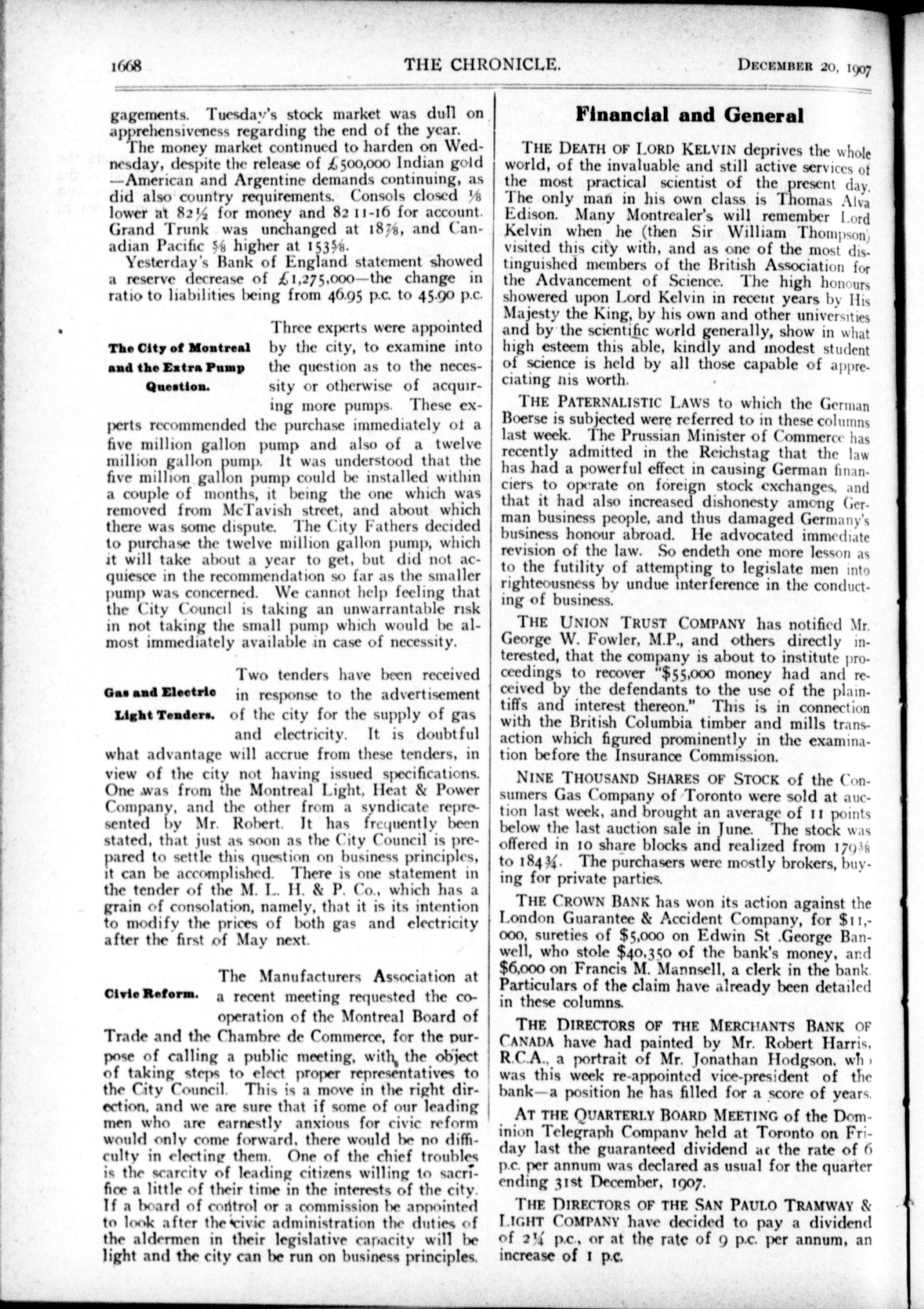 The chronicle : Vol. XXVII, No. 51 (December 20, 1907)