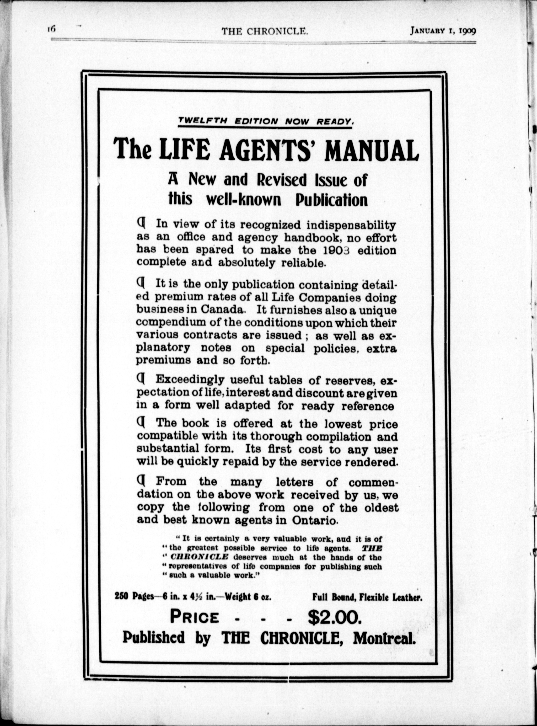 The chronicle : Vol. XXIX, No. 1 (January 1, 1909)