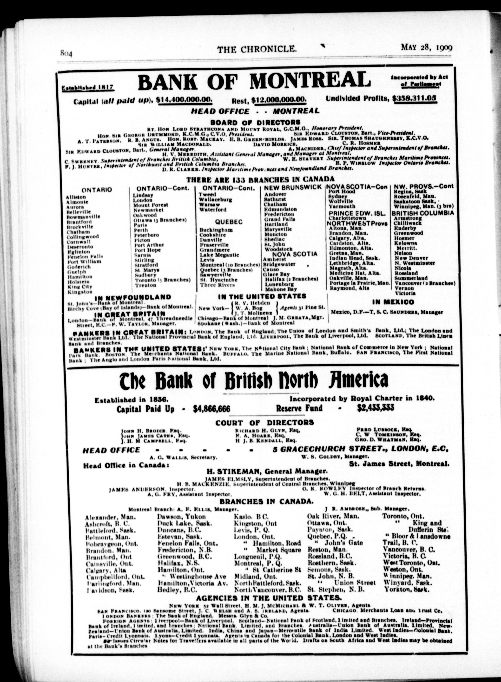The chronicle : Vol. XXIX, No. 22 (May 28, 1909)