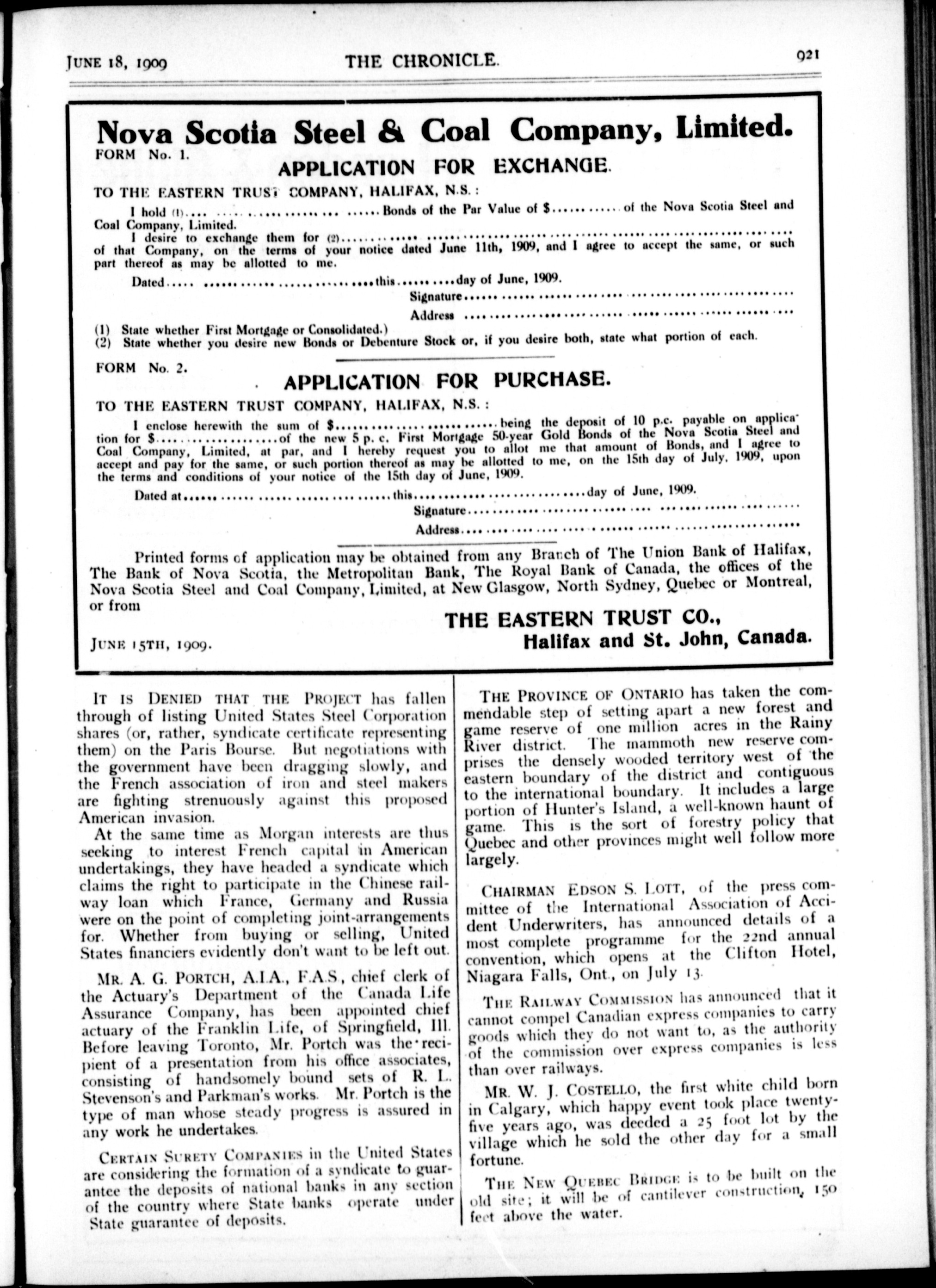 The chronicle : Vol. XXIX, No. 25 (June 18, 1909)