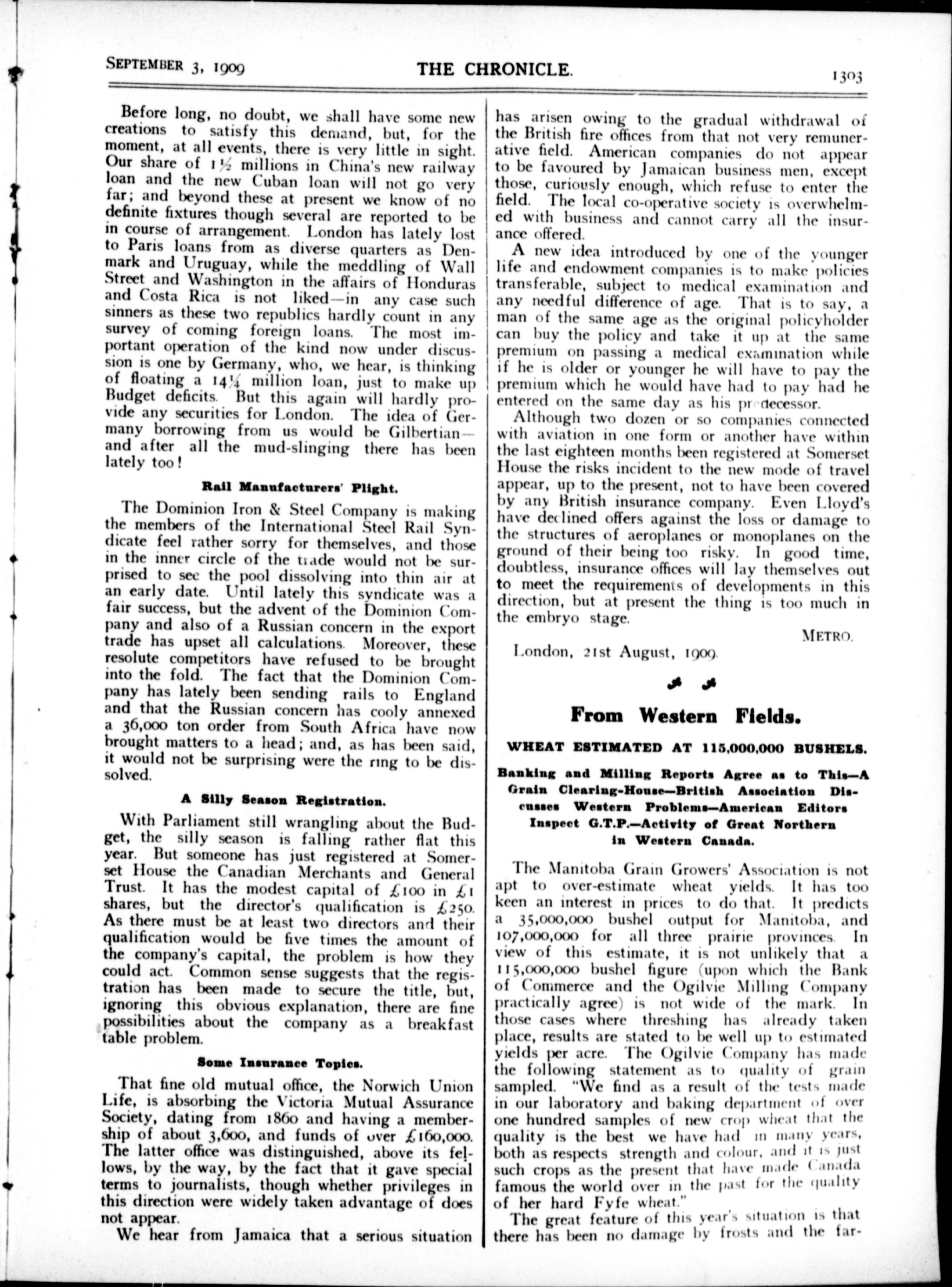 The chronicle : Vol. XXIX, No. 36 (September 3, 1909)