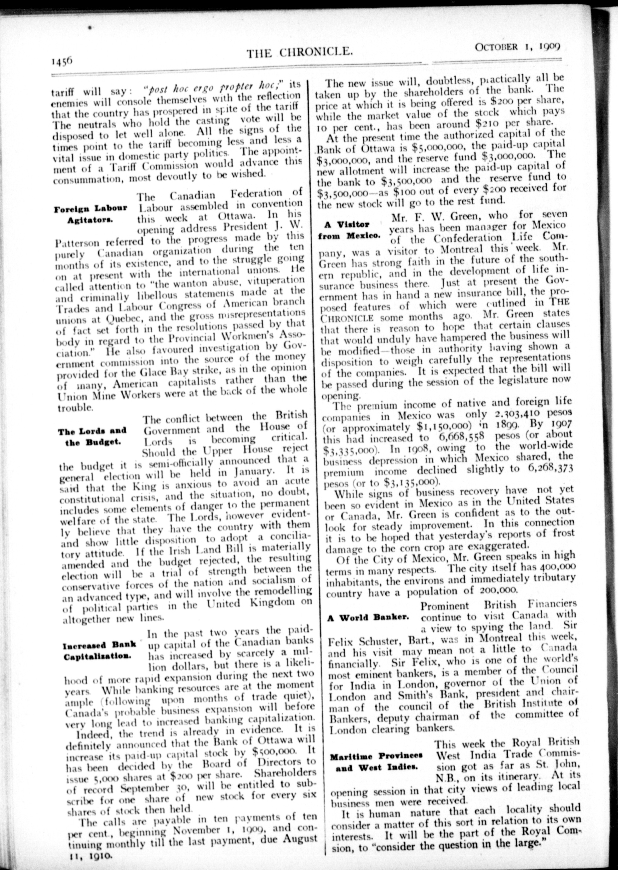 The chronicle : Vol. XXIX, No. 40 (October 1, 1909)
