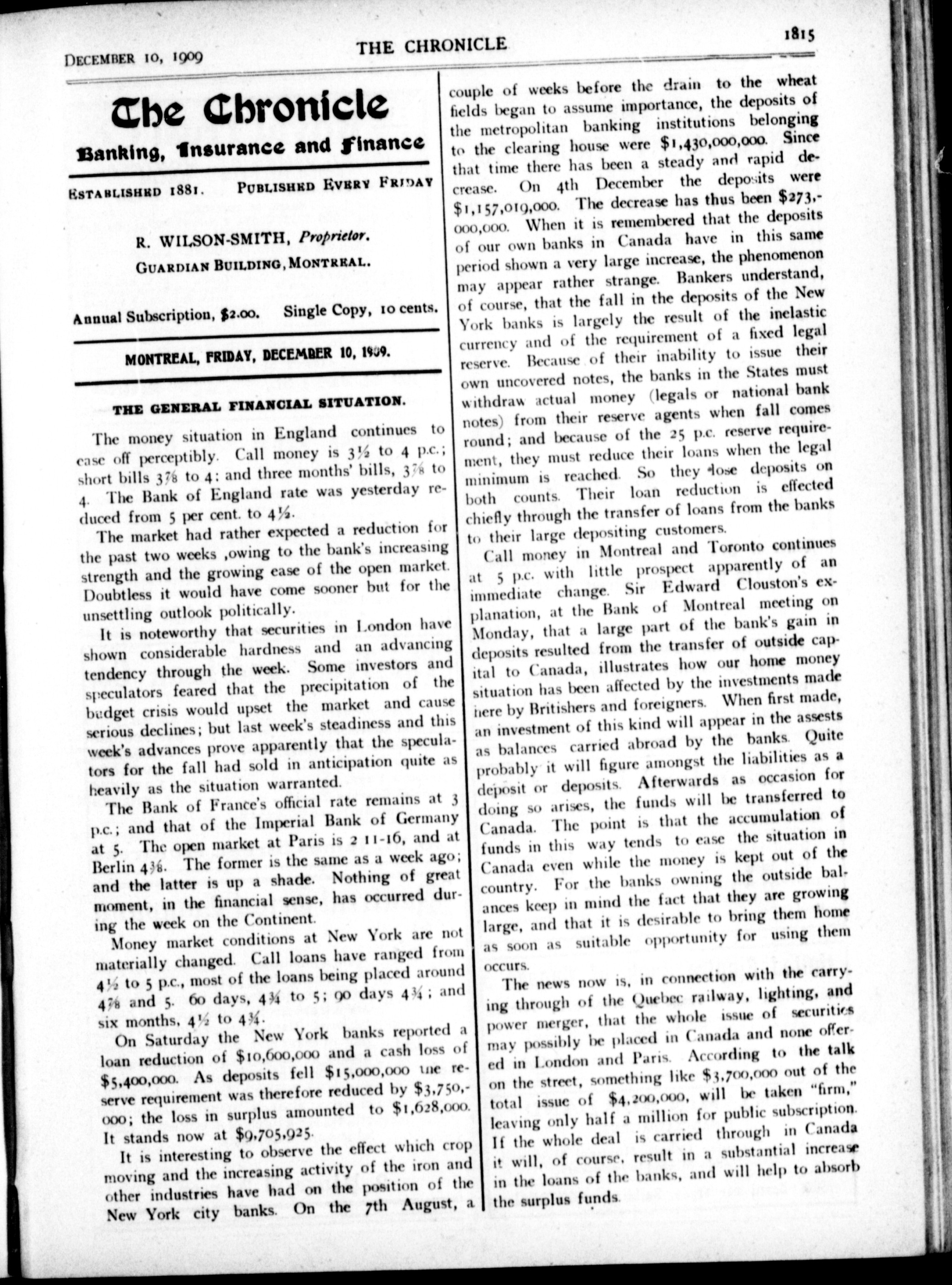 The chronicle : Vol. XXIX, No. 50 (December 10, 1909)