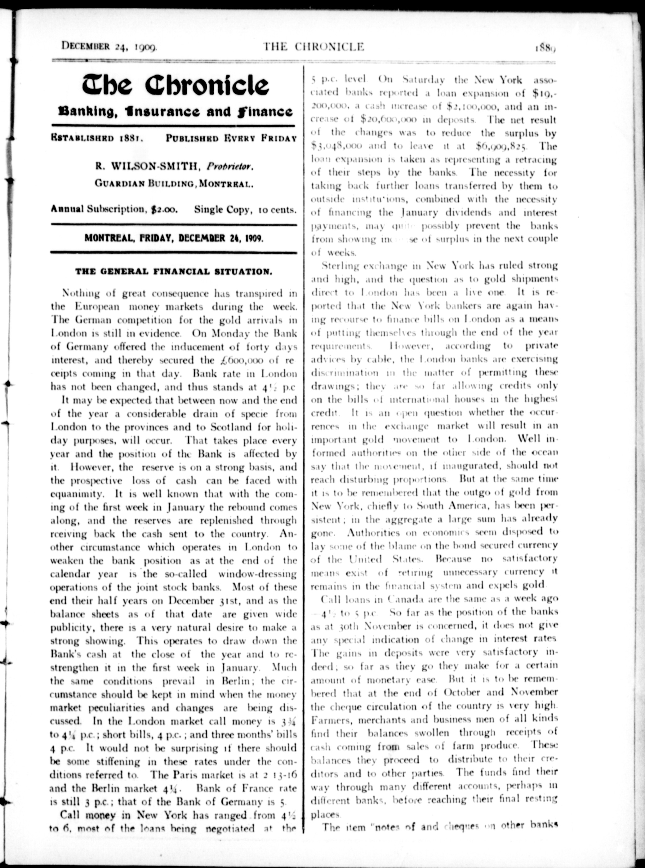 The chronicle : Vol. XXIX, No. 52 (December 24, 1909)