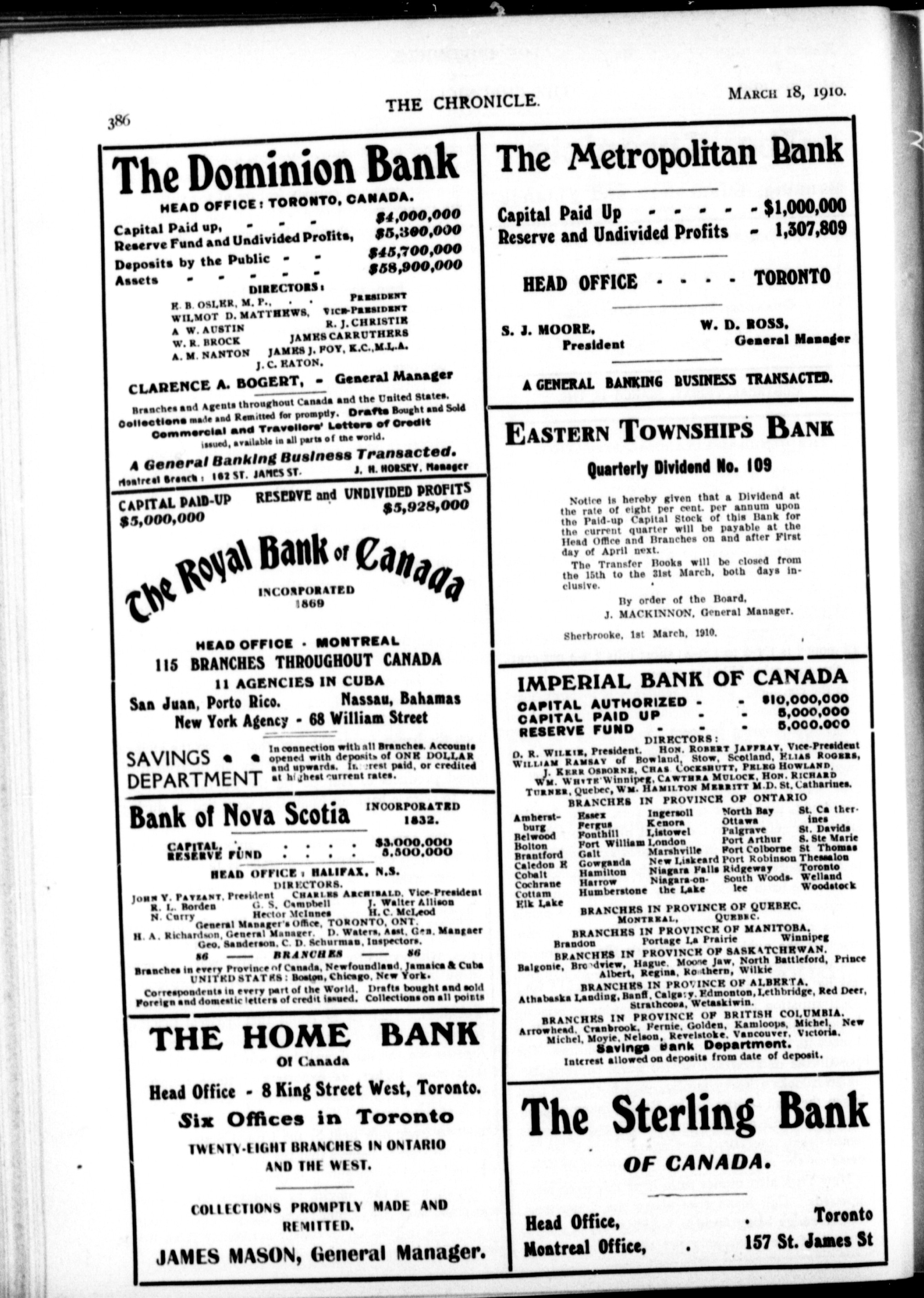 The chronicle : Vol. XXX, No. 11 (March 18, 1910)