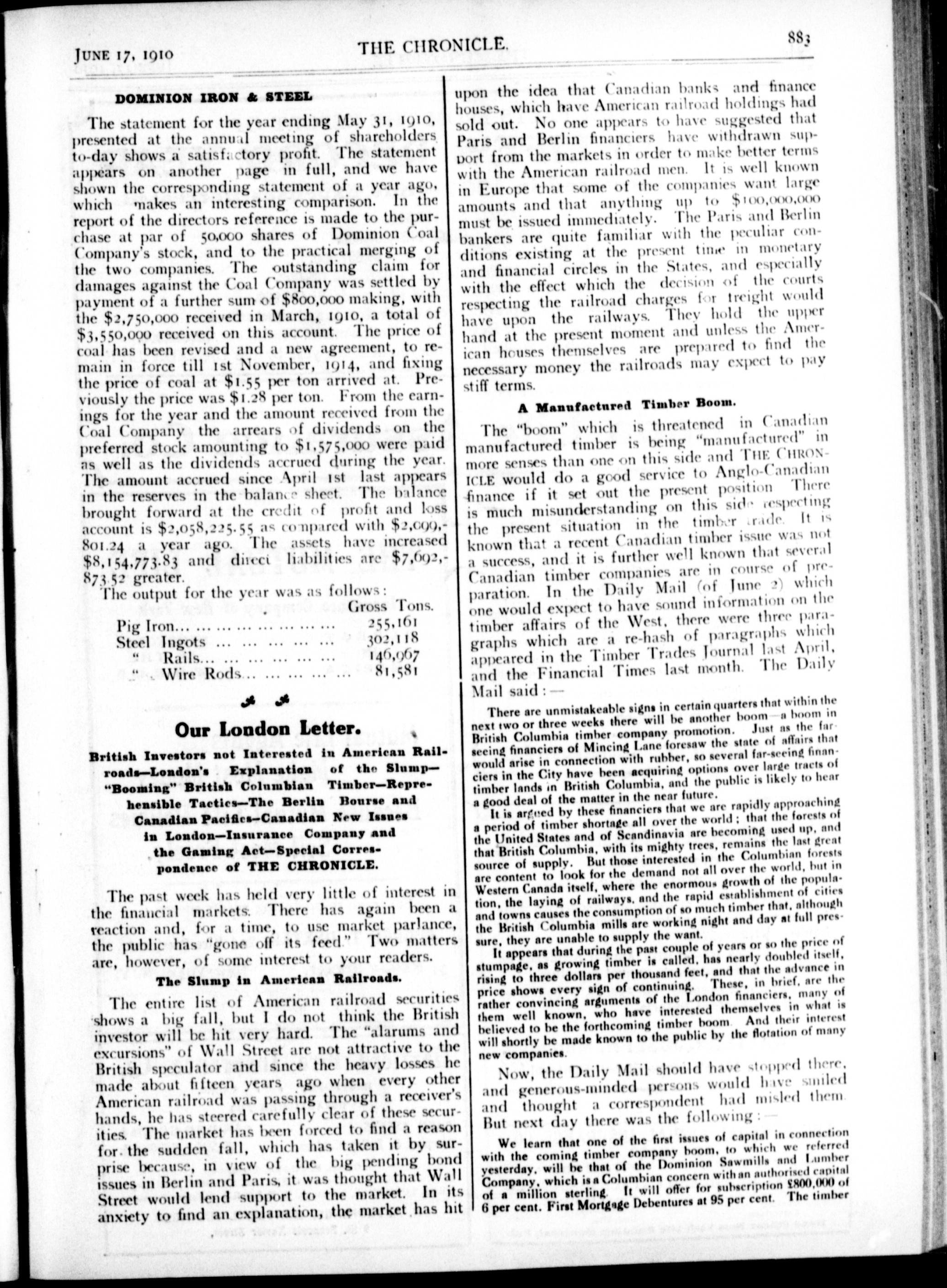 The chronicle : Vol. XXX, No. 24 (June 17, 1910)