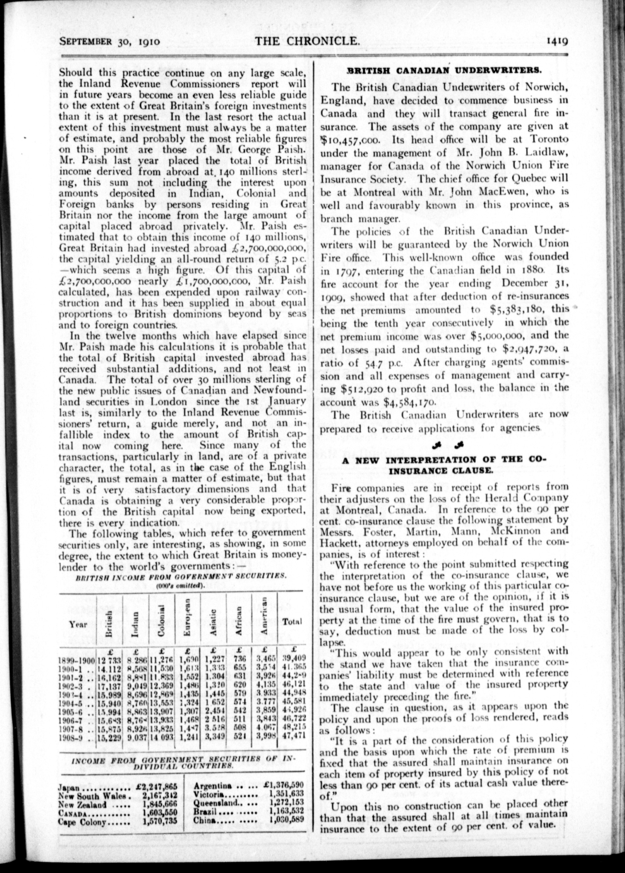 The chronicle : Vol. XXX, No. 39 (September 30, 1910)