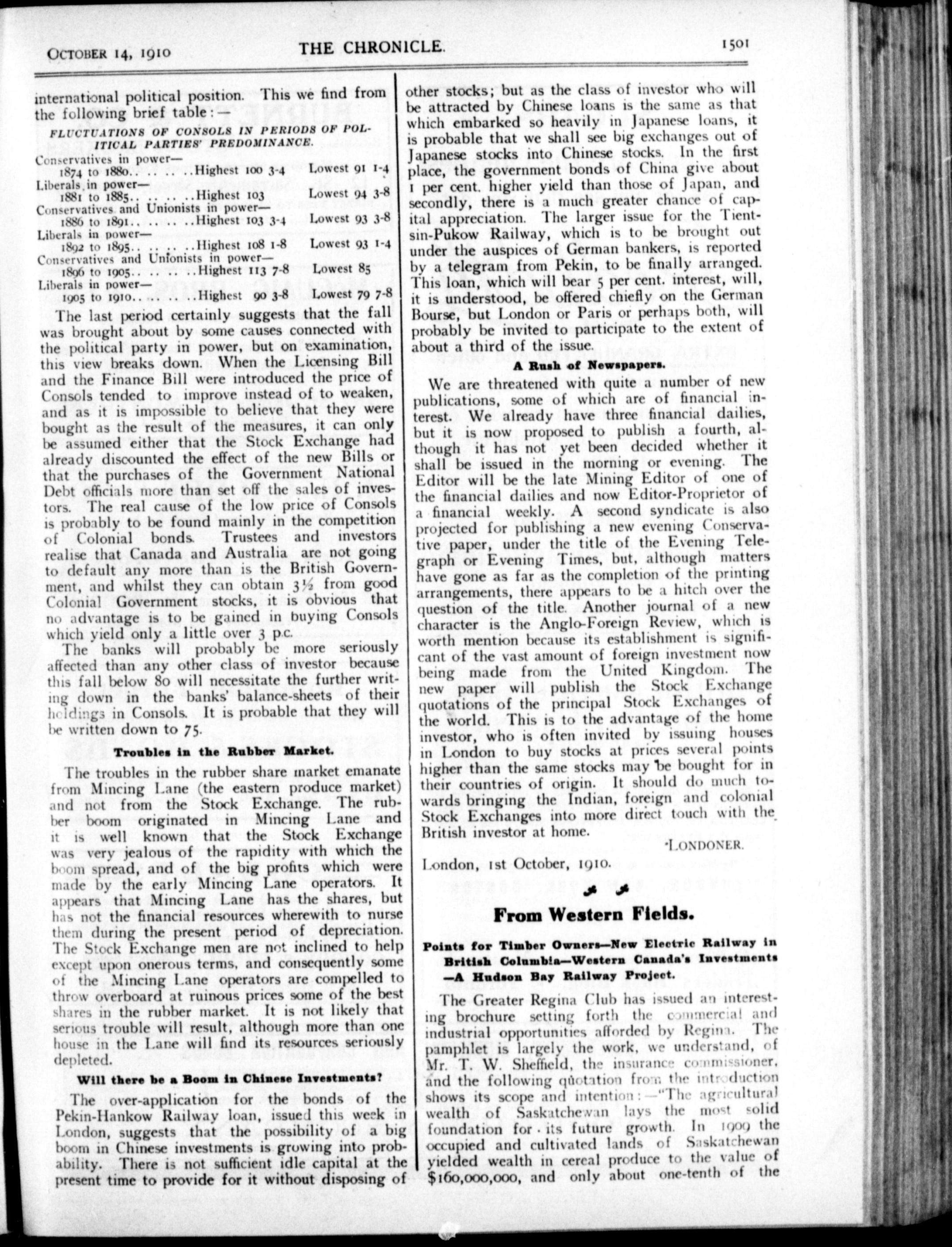 The chronicle : Vol. XXX, No. 41 (October 14, 1910)