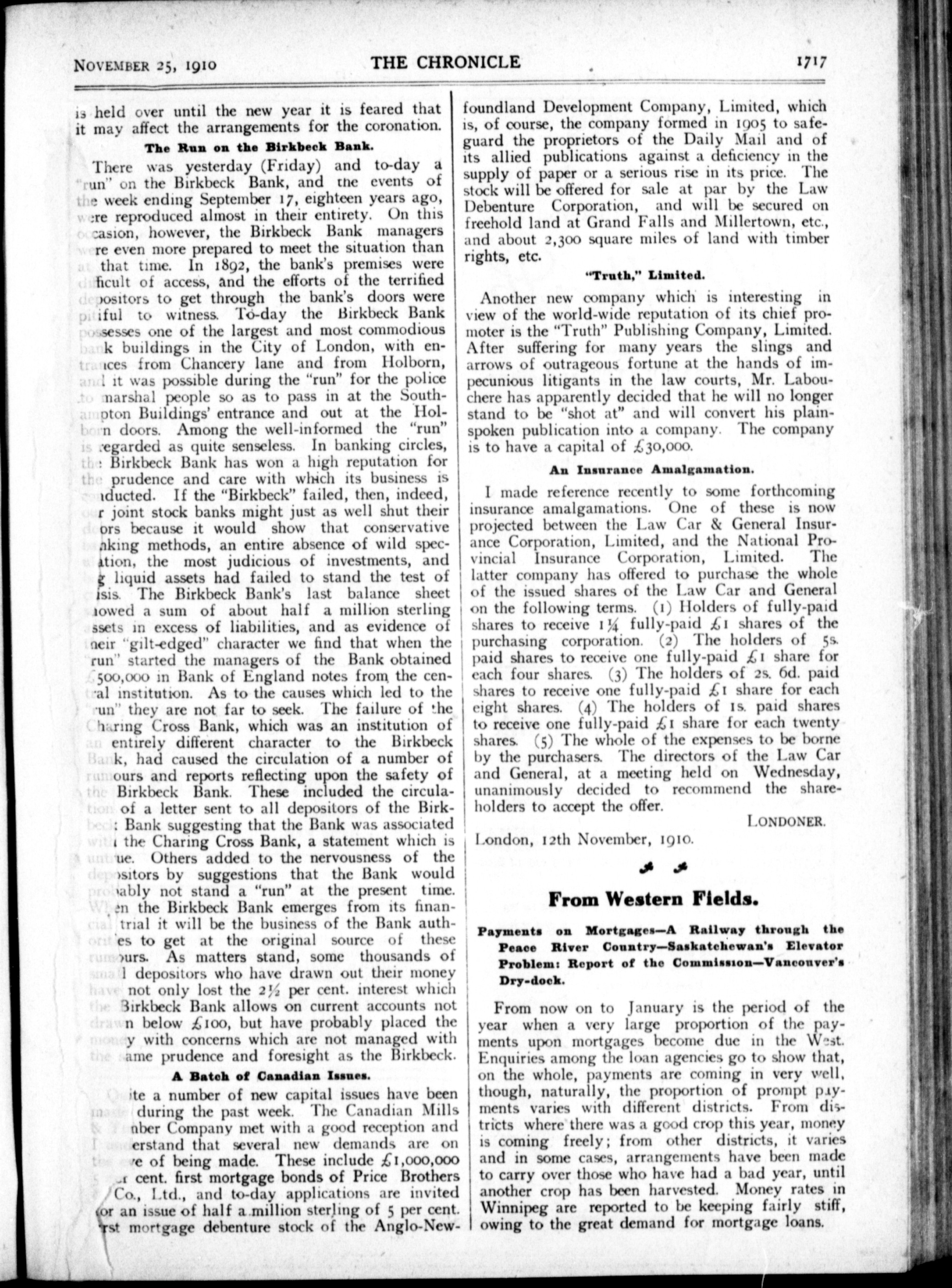 The chronicle : Vol. XXX, No. 47 (November 25, 1910)