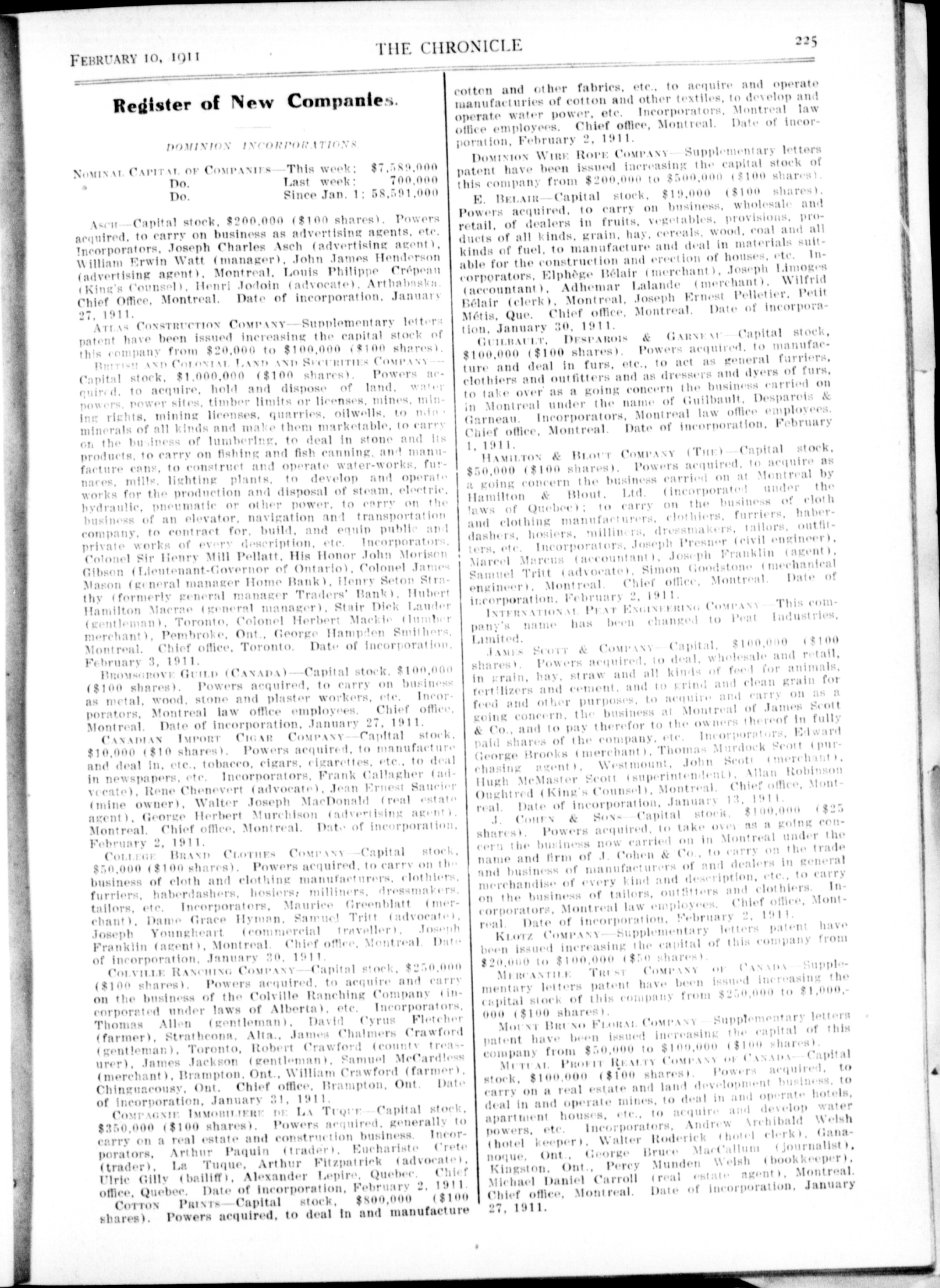 The chronicle : Vol. XXXI, No. 6 (February 10, 1911)