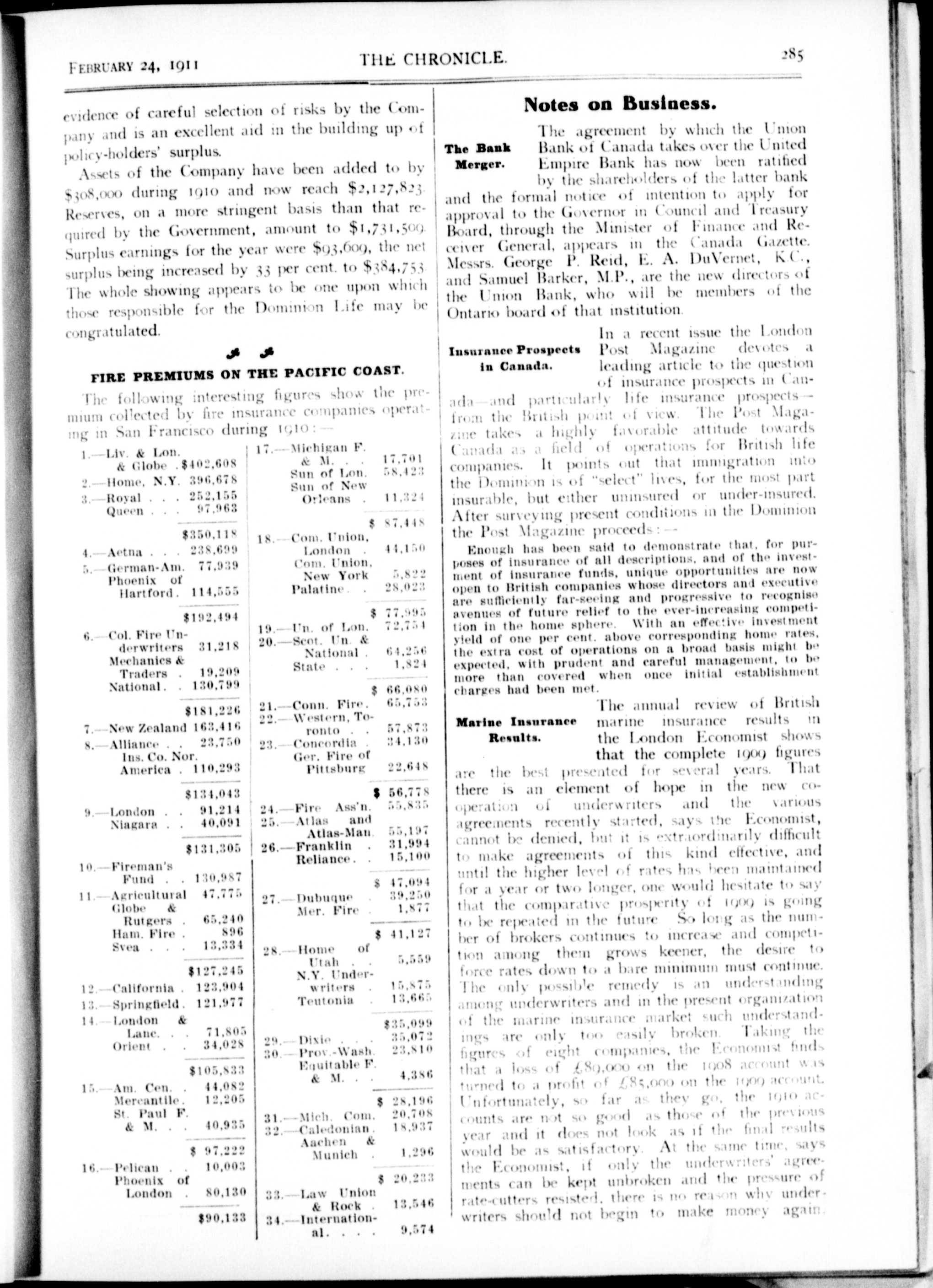 The chronicle : Vol. XXXI, No. 8 (February 24, 1911)