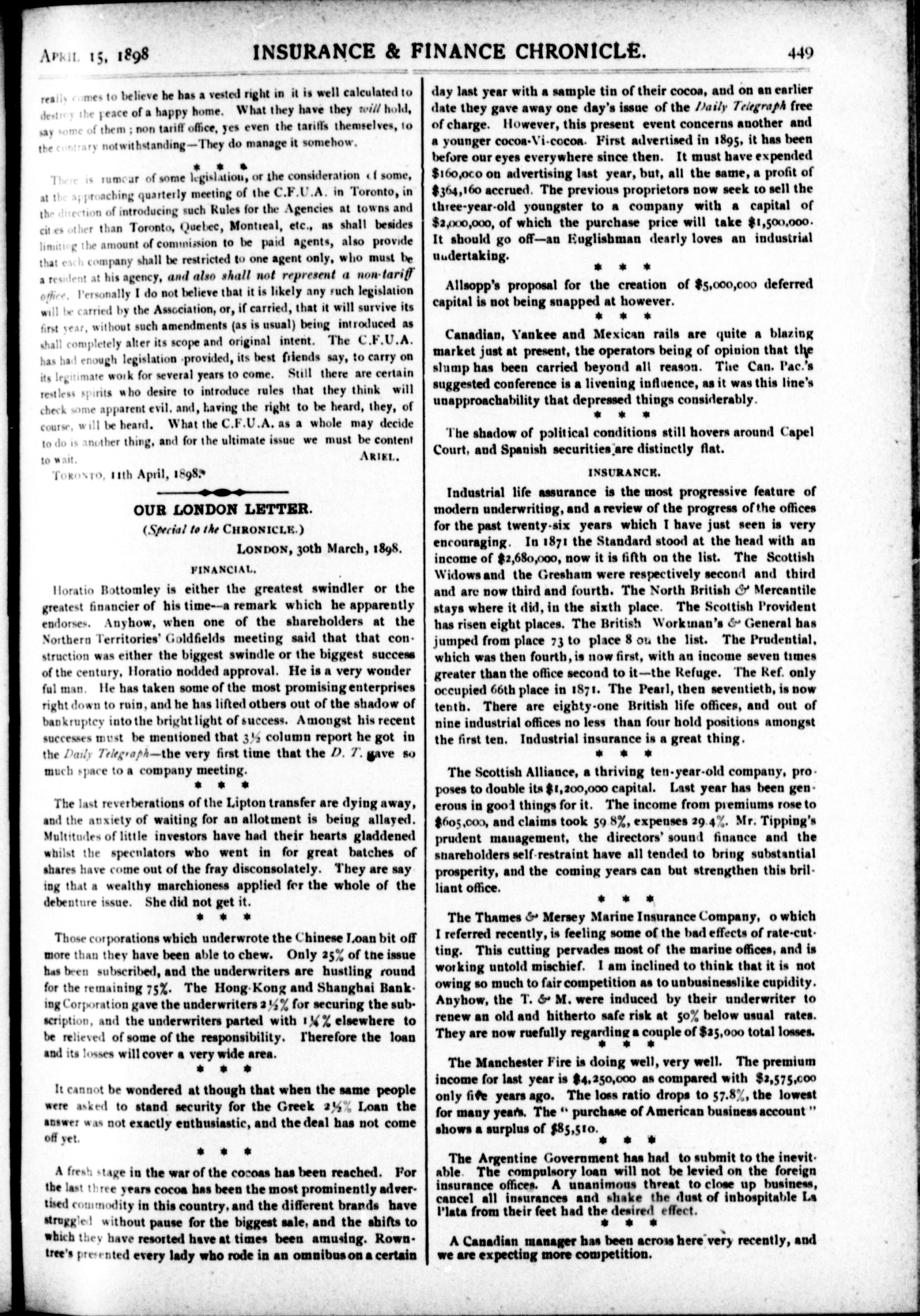 The chronicle : Vol. XVIII, No. 15 (April 15, 1898)