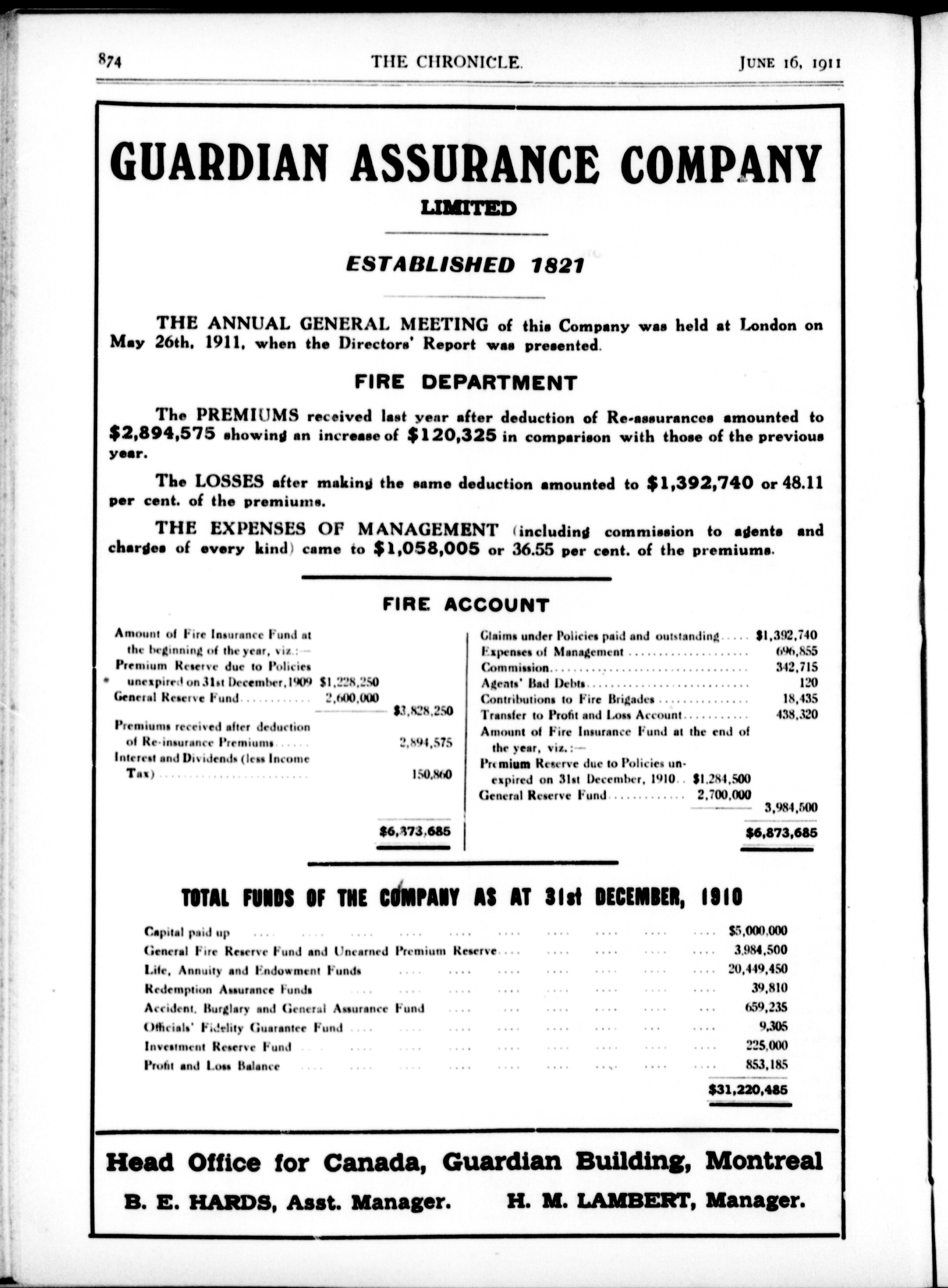 The chronicle : Vol. XXXI, No. 24 (June 16, 1911)