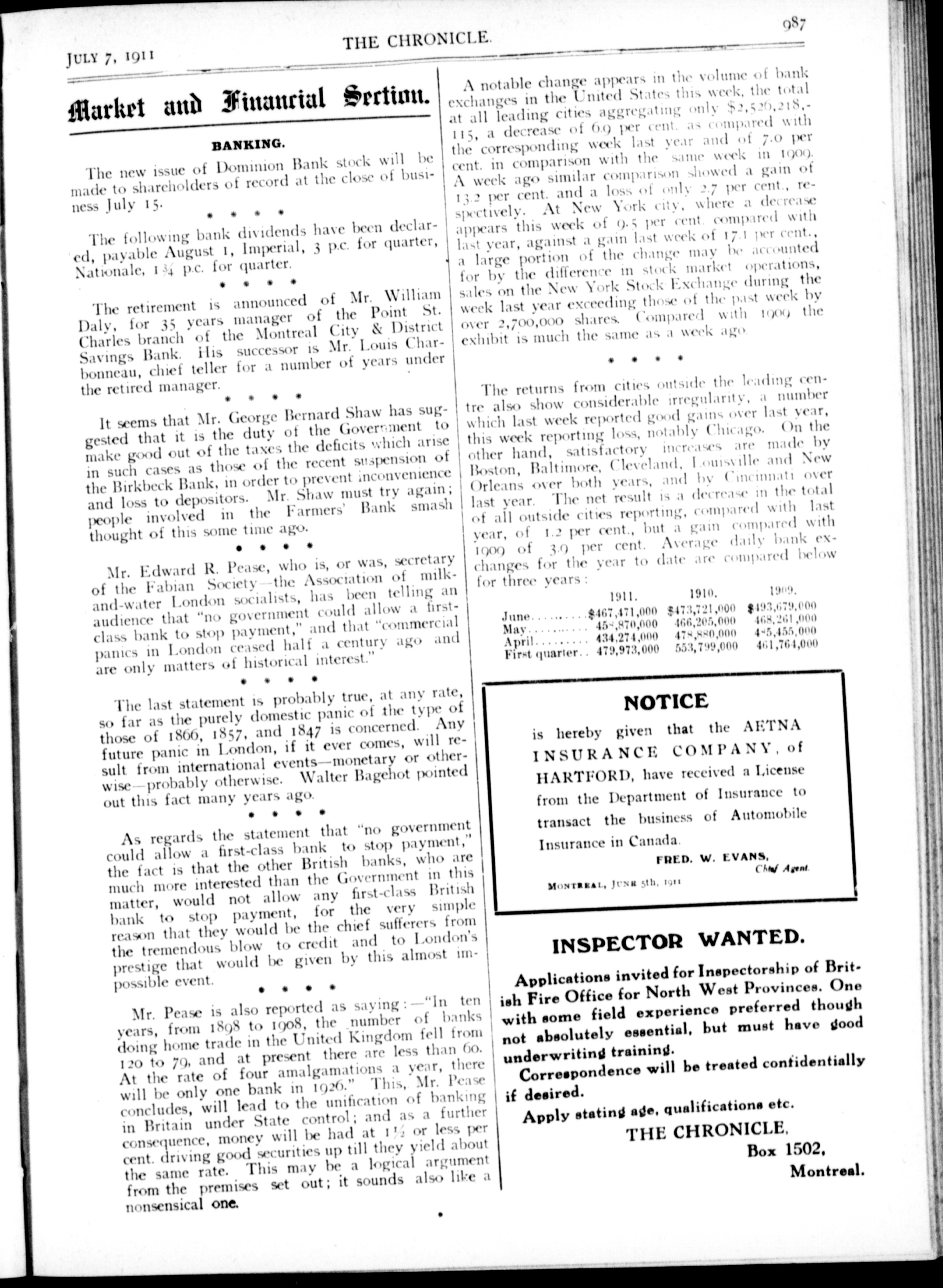 The chronicle : Vol. XXXI, No. 27 (July 7, 1911)