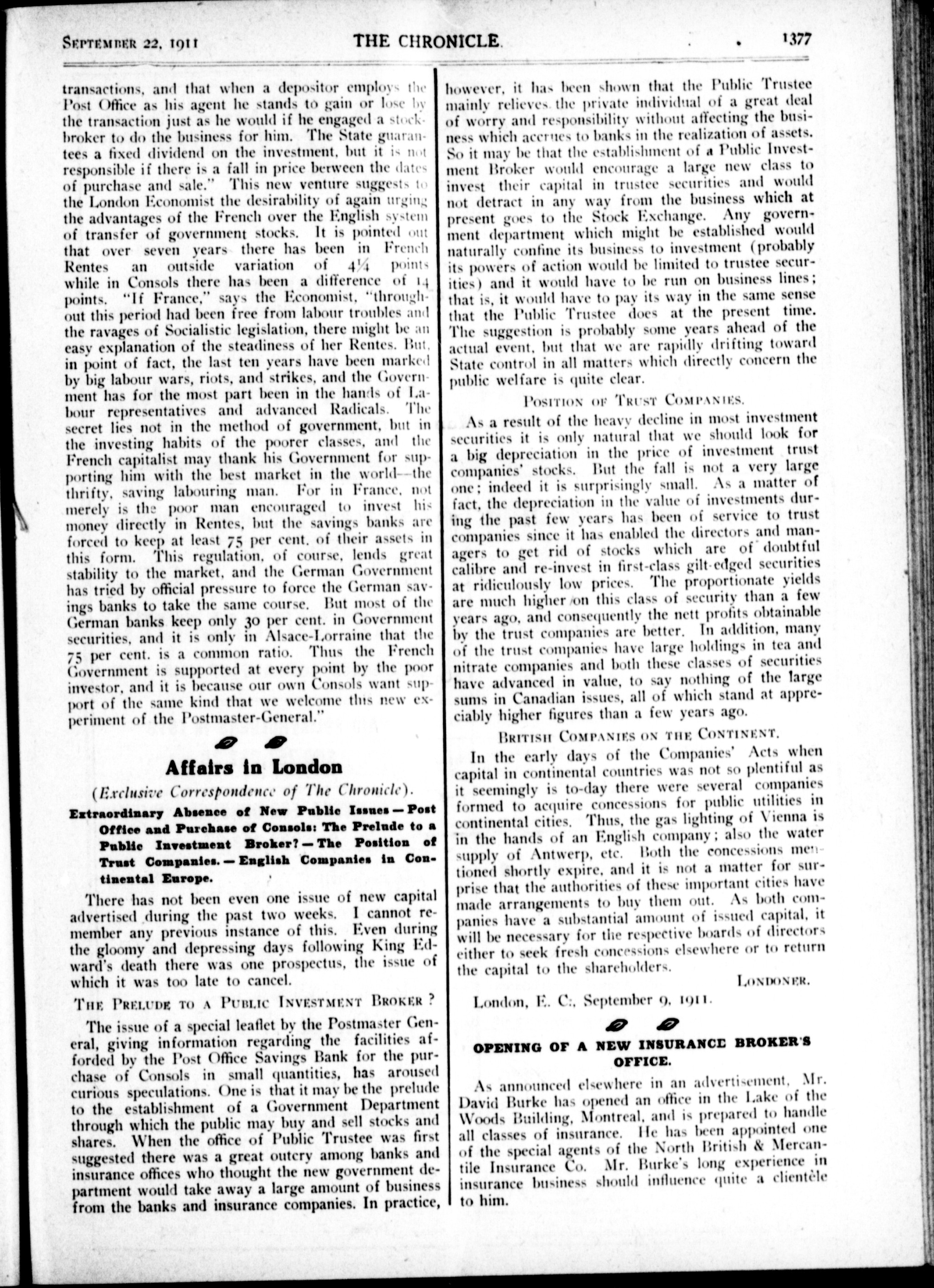 The chronicle : Vol. XXXI, No. 38 (September 22, 1911)