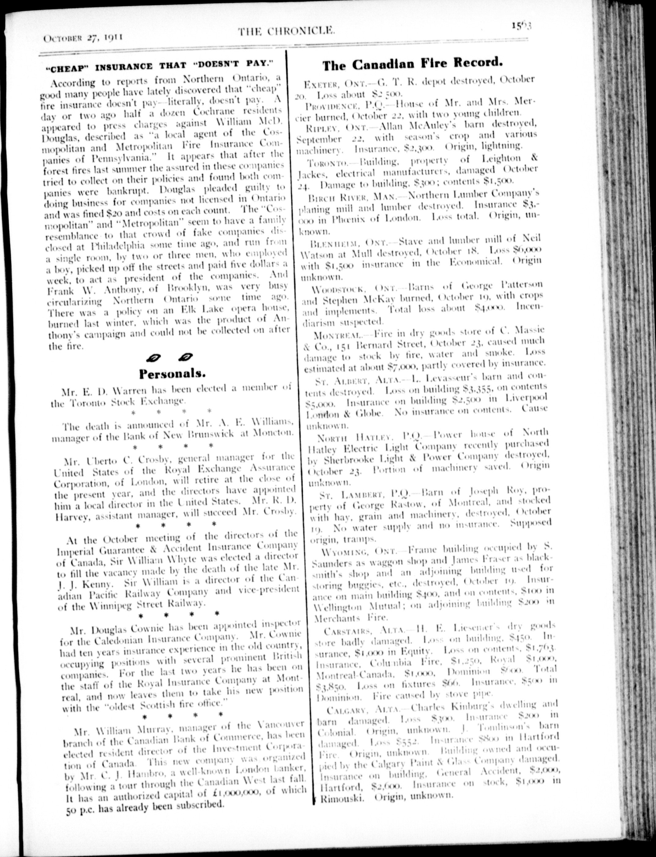 The chronicle : Vol. XXXI, No. 43 (October 27, 1911)
