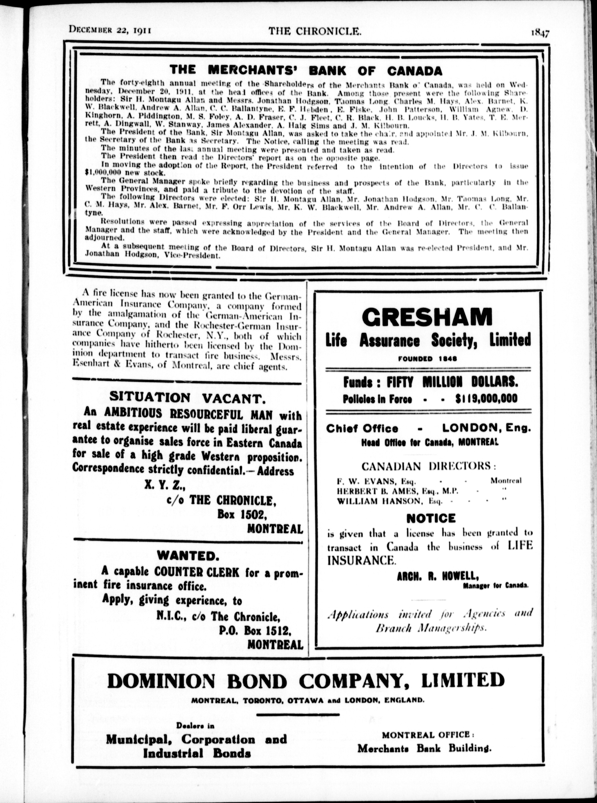 The chronicle : Vol. XXXI, No. 51 (December 22, 1911)