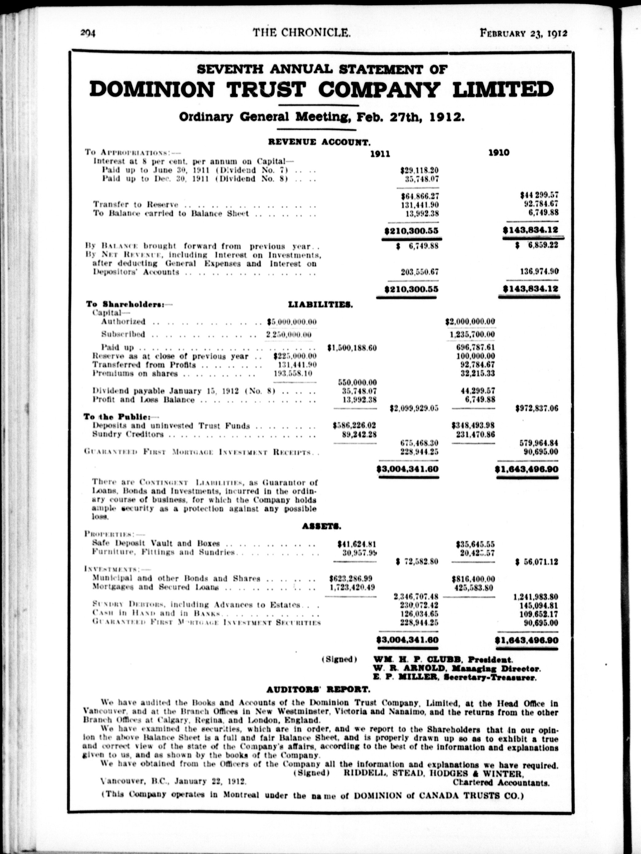 The chronicle : Vol. XXXII, No. 8 (February 23, 1912)