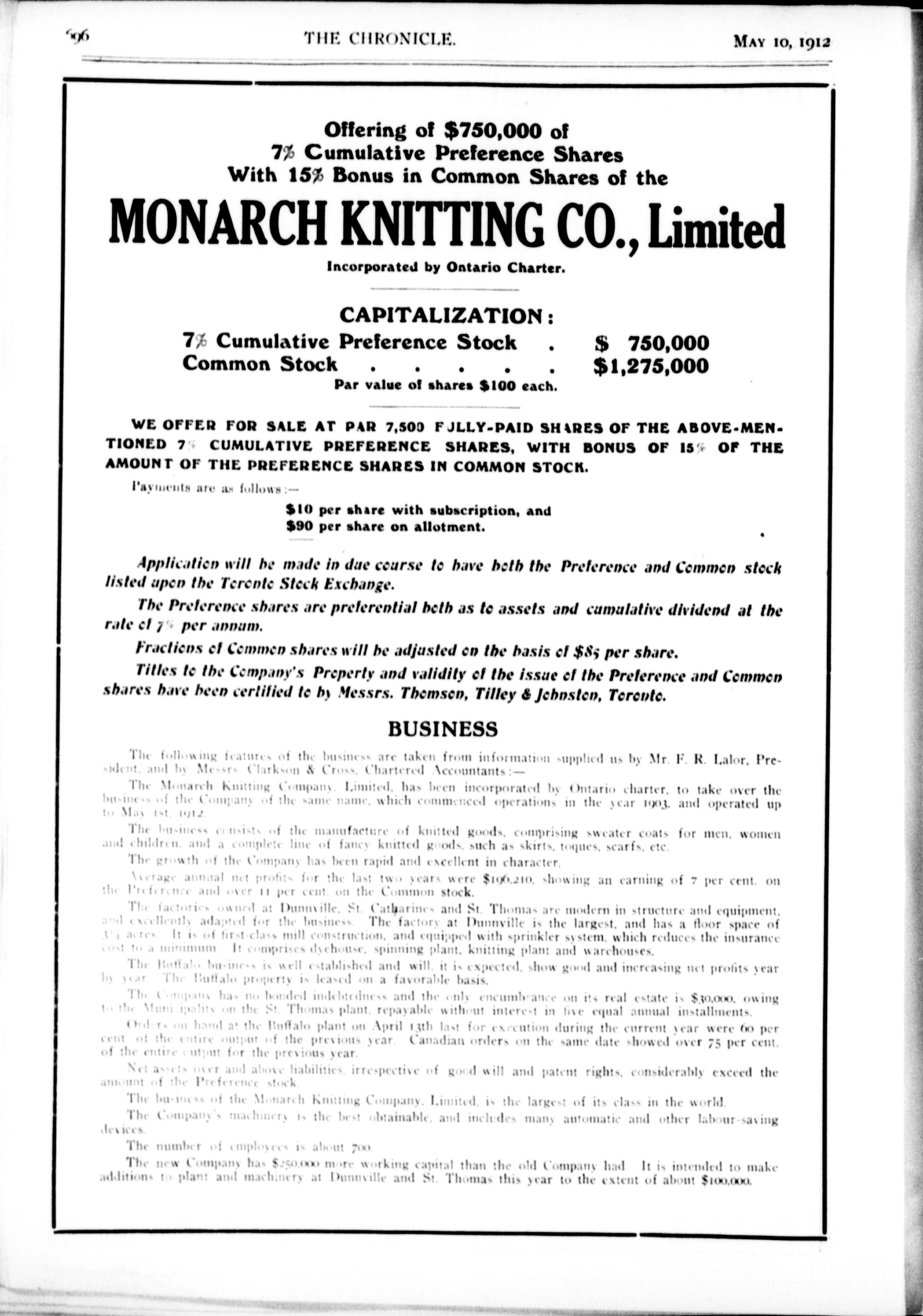 The chronicle : Vol. XXXII, No. 19 (May 10, 1912)