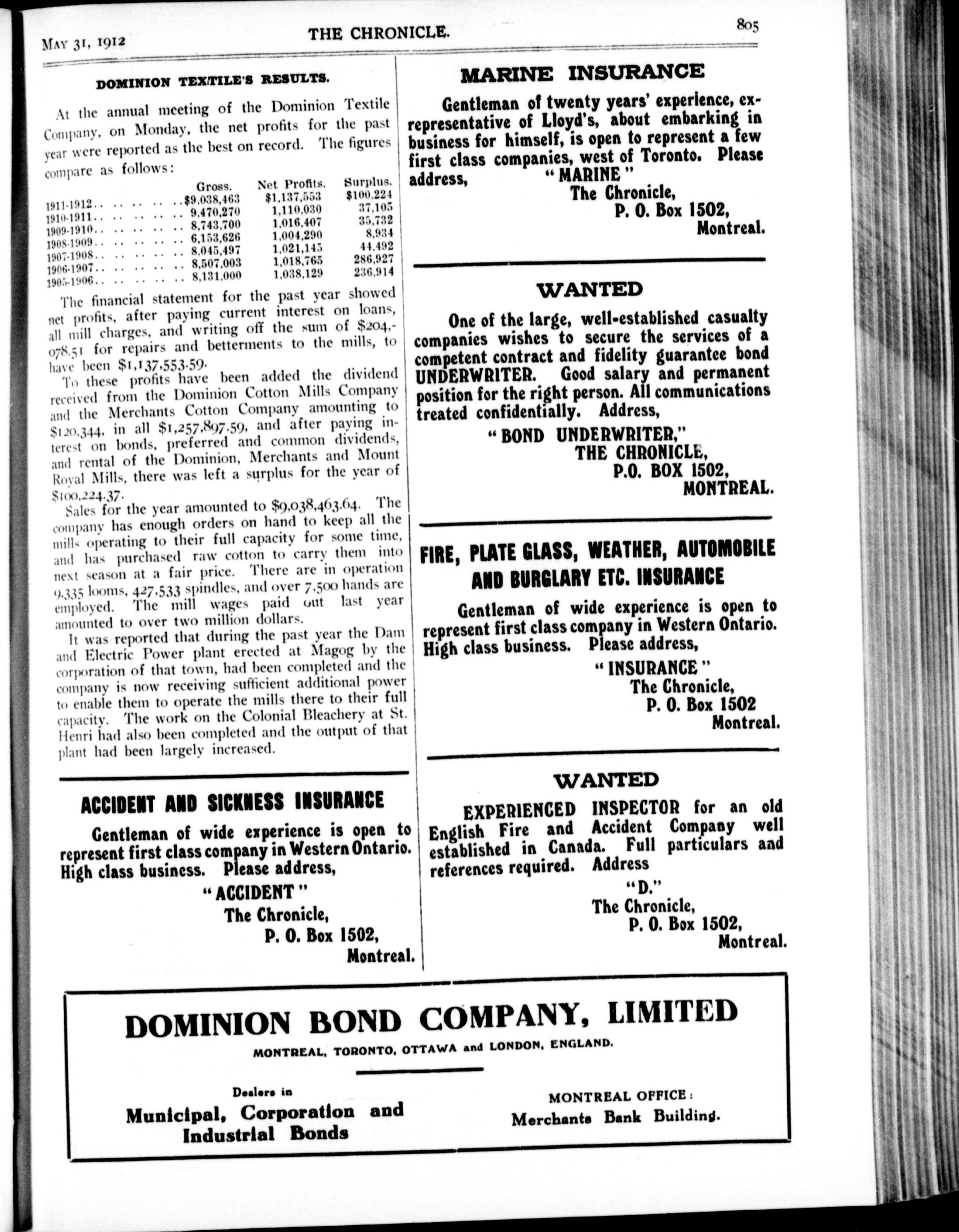 The chronicle : Vol. XXXII, No. 22 (May 31, 1912)