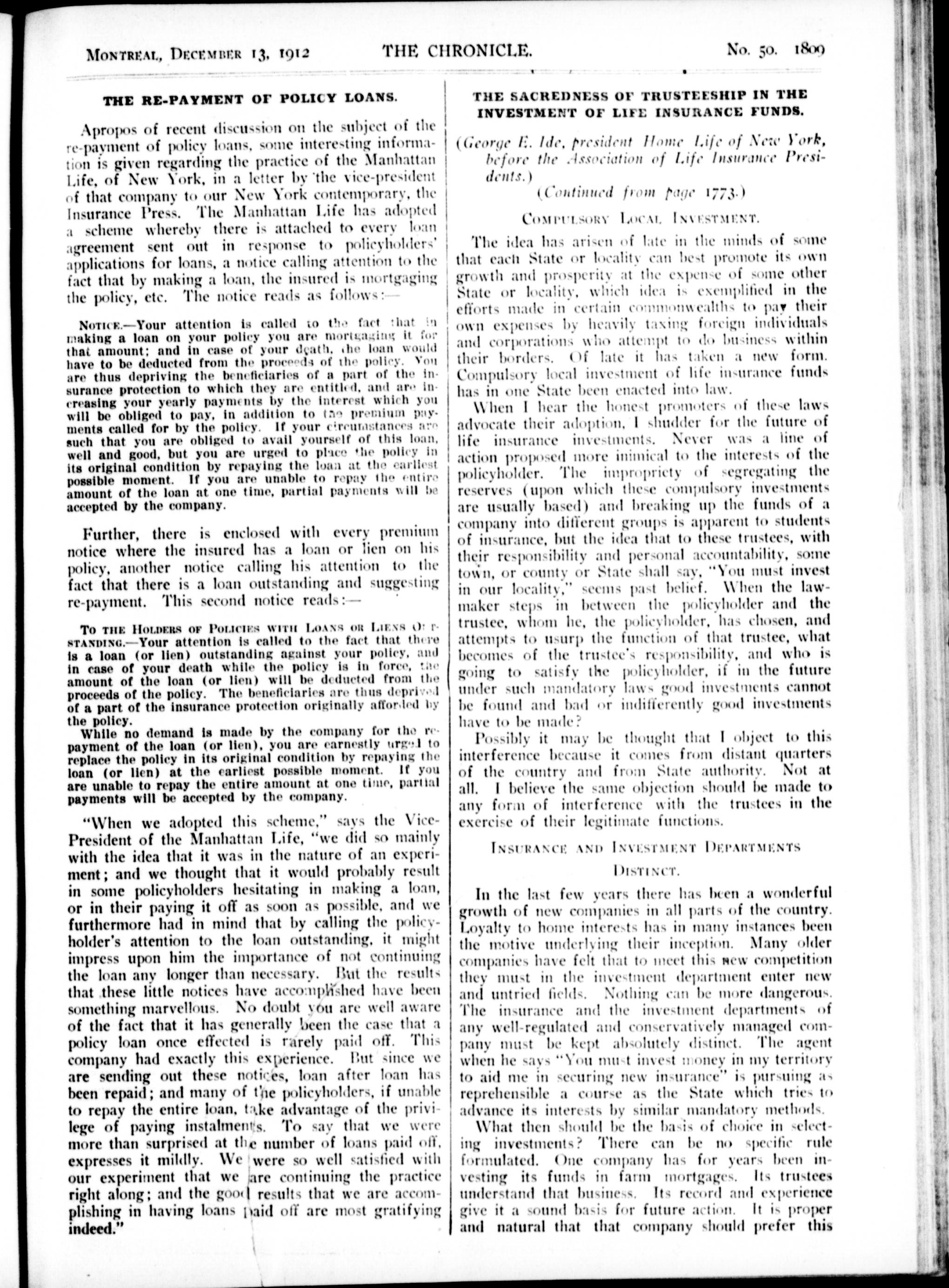 The chronicle : Vol. XXXII, No. 50 (December 13, 1912)