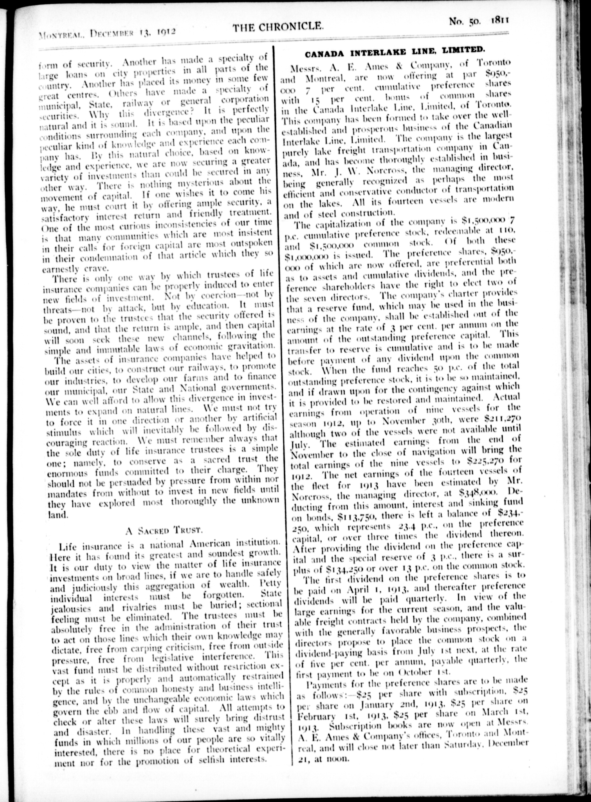 The chronicle : Vol. XXXII, No. 50 (December 13, 1912)