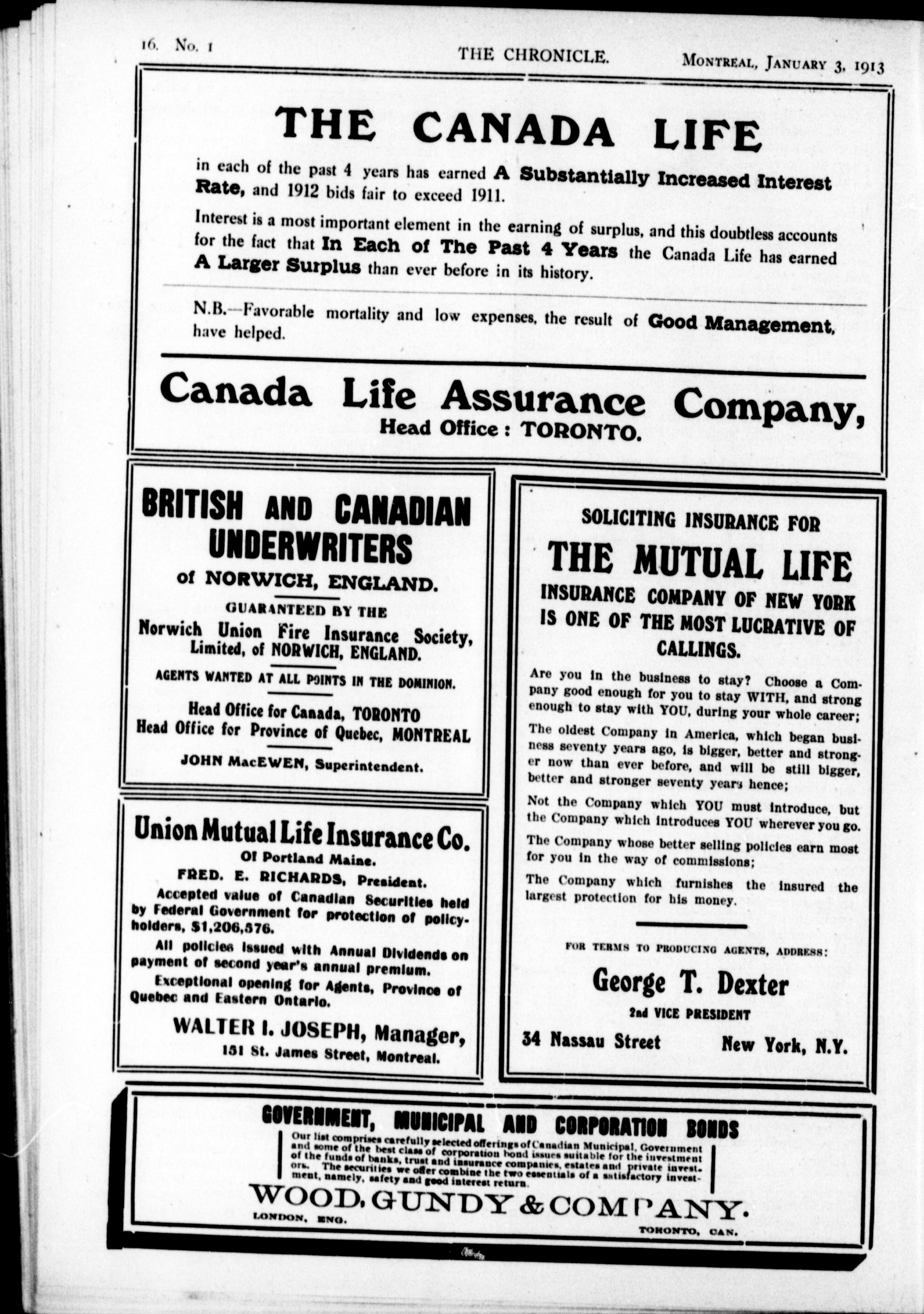 The chronicle : Vol. XXXIII, No. 1 (January 3, 1913)