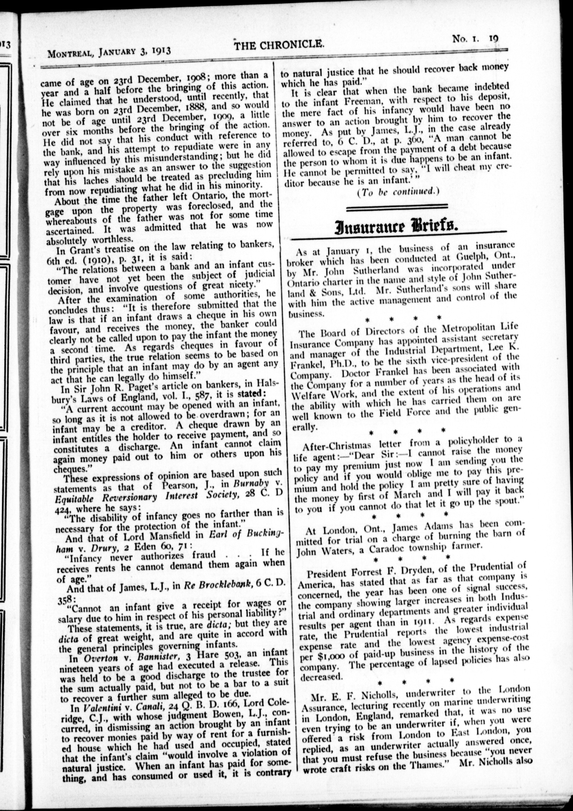 The chronicle : Vol. XXXIII, No. 1 (January 3, 1913)