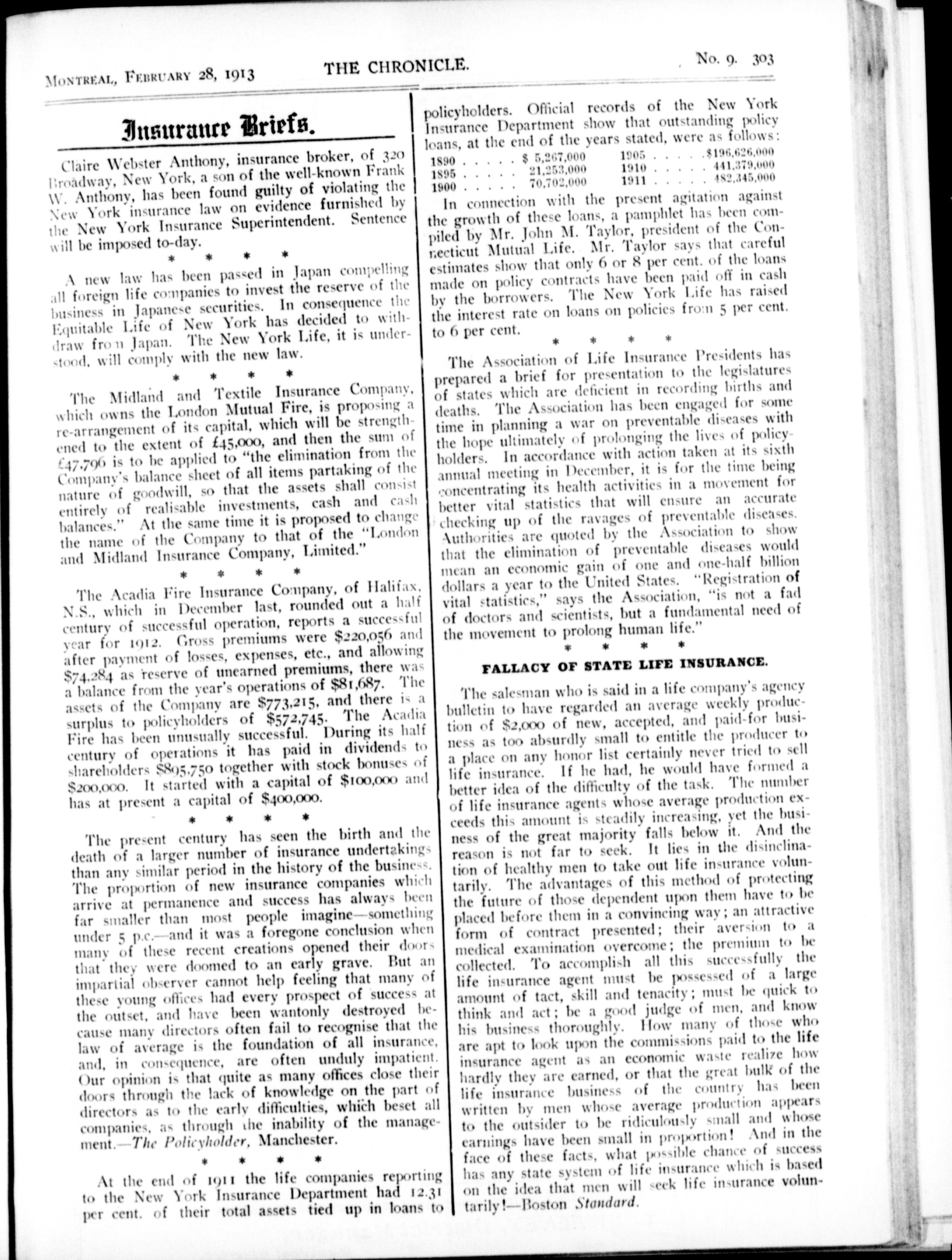 The chronicle : Vol. XXXIII, No. 9 (February 28, 1913)
