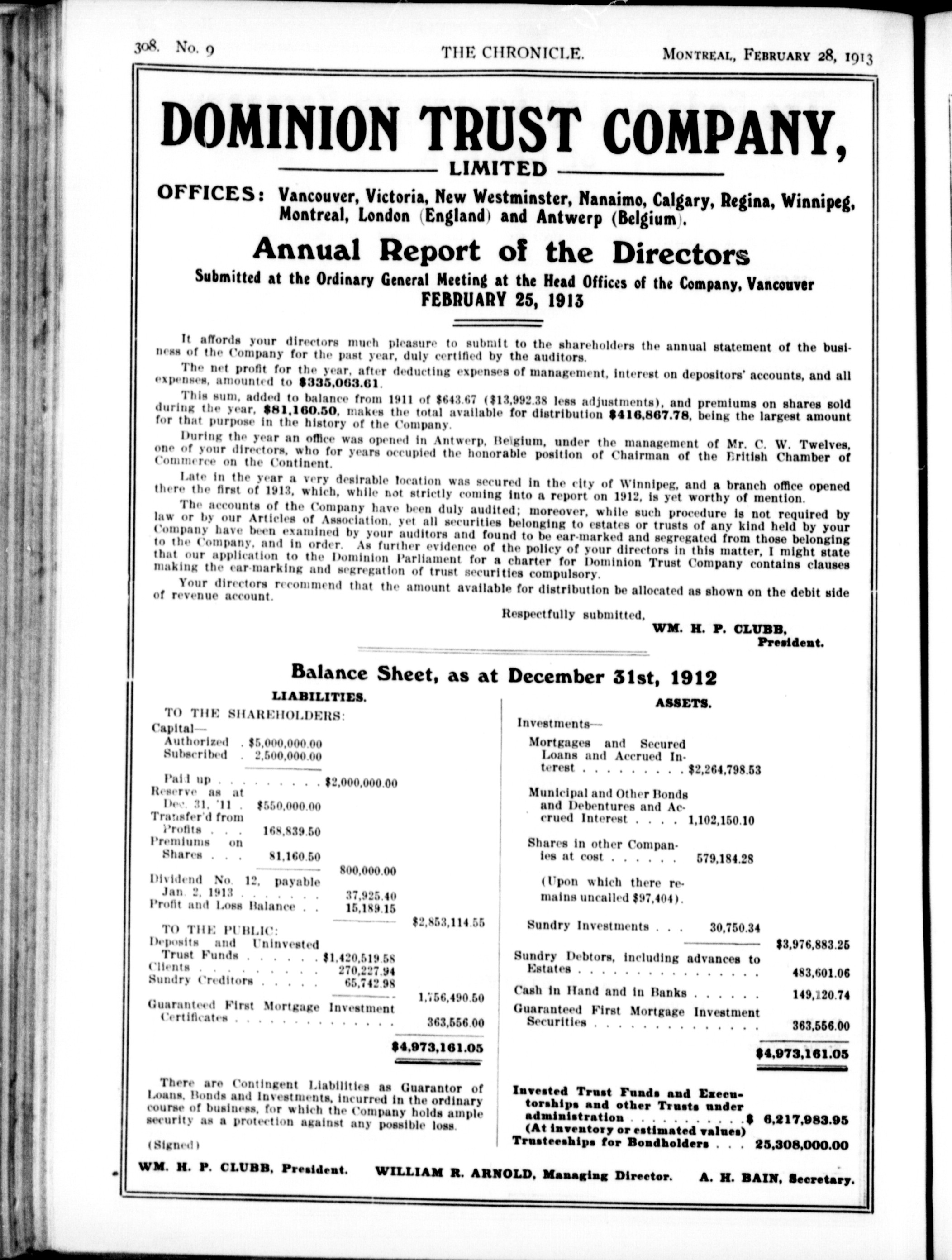 The chronicle : Vol. XXXIII, No. 9 (February 28, 1913)