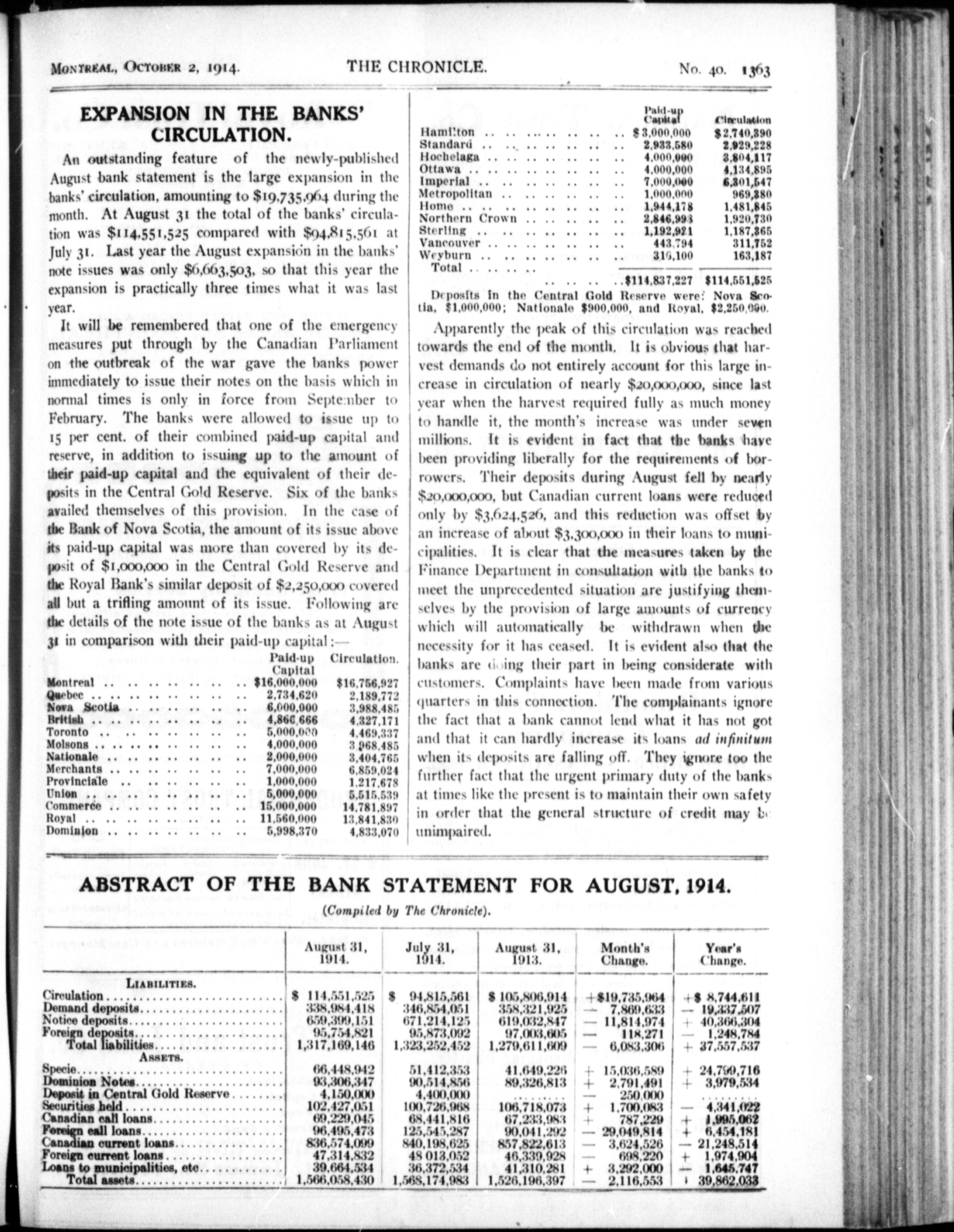 The chronicle : Vol. XXXIV, No. 40 (October 2, 1914)
