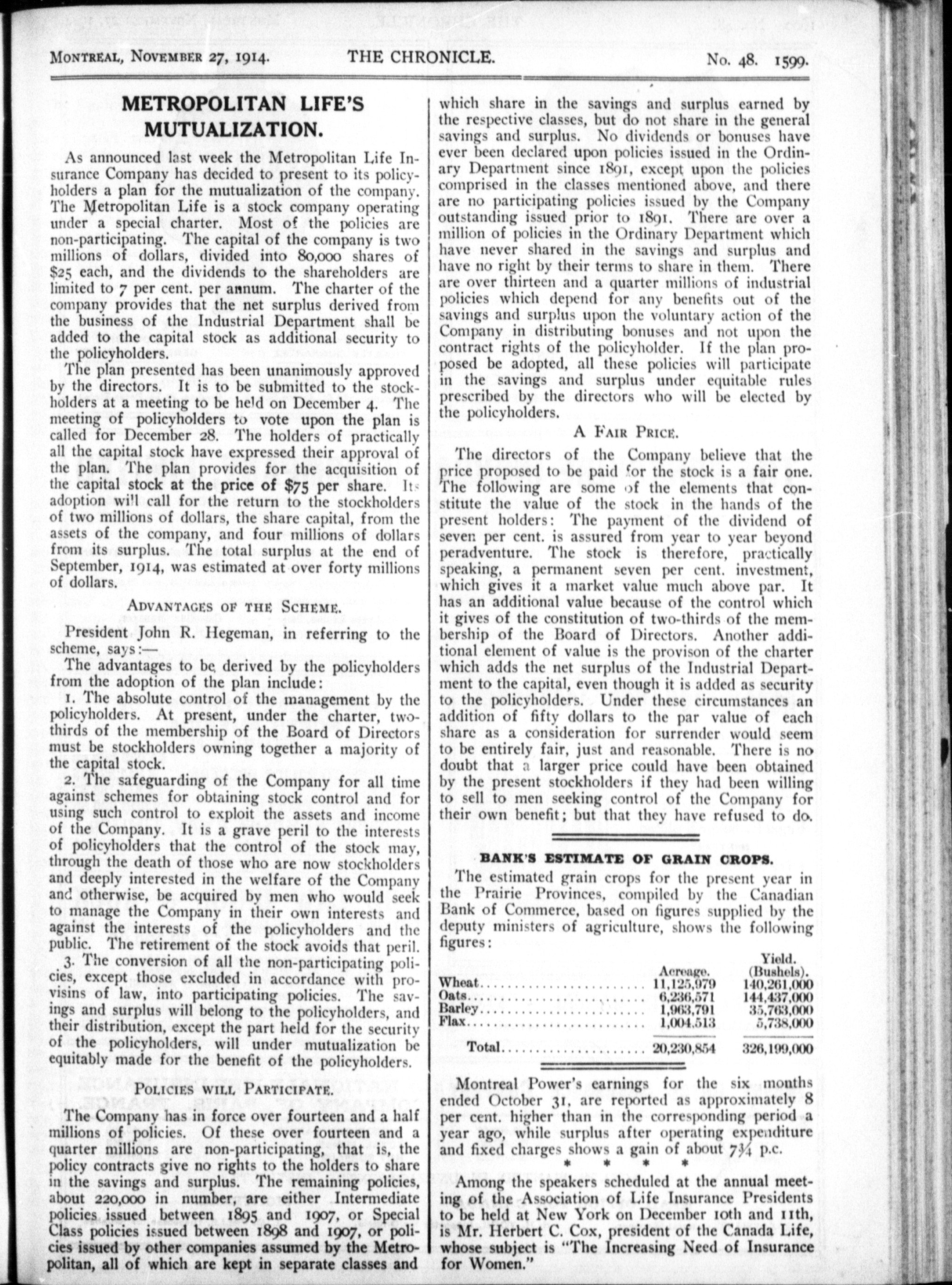 The chronicle : Vol. XXXIV, No. 48 (November 27, 1914)